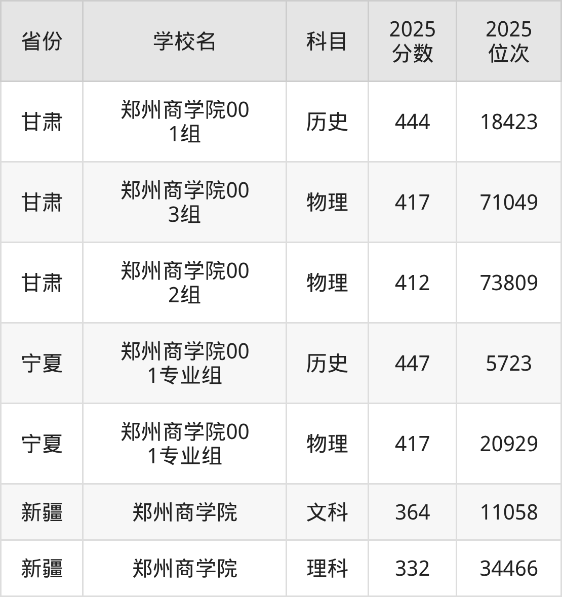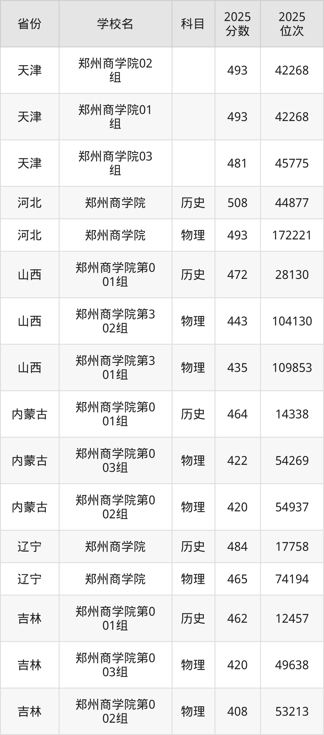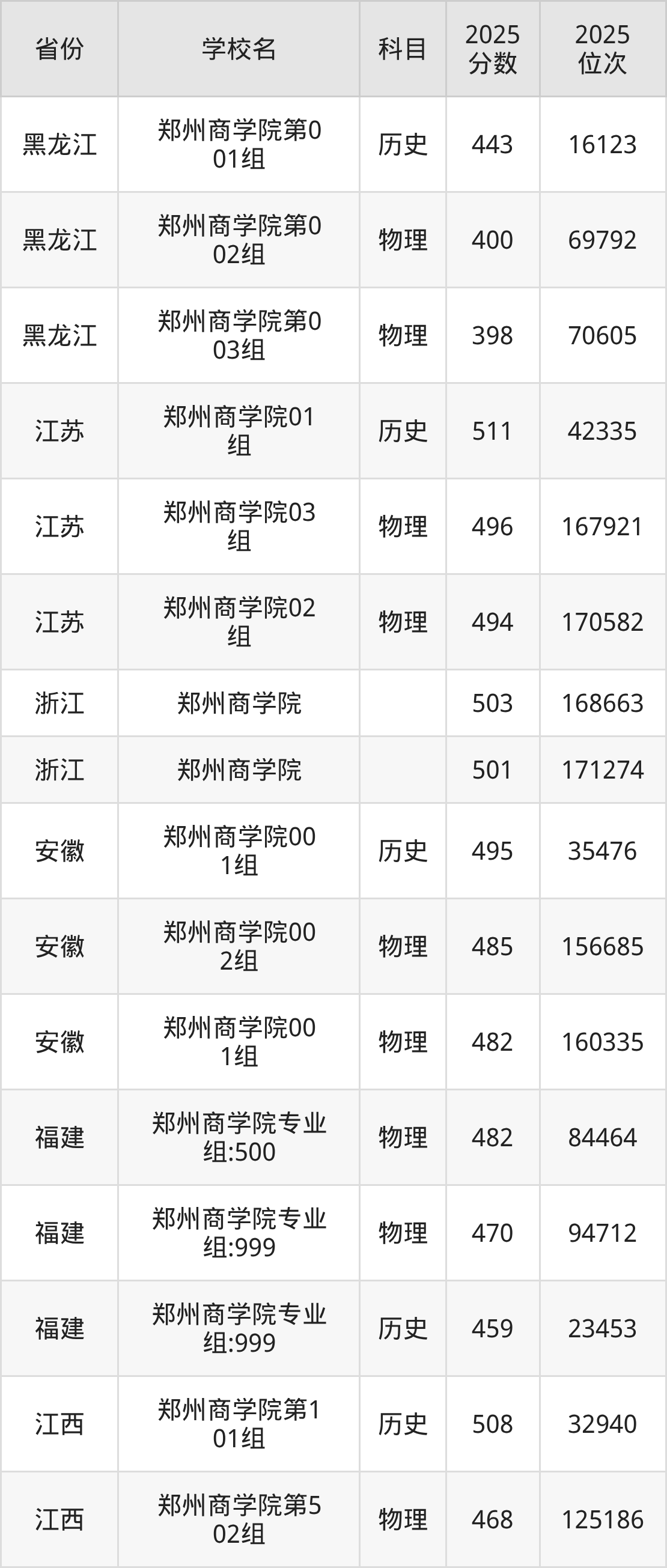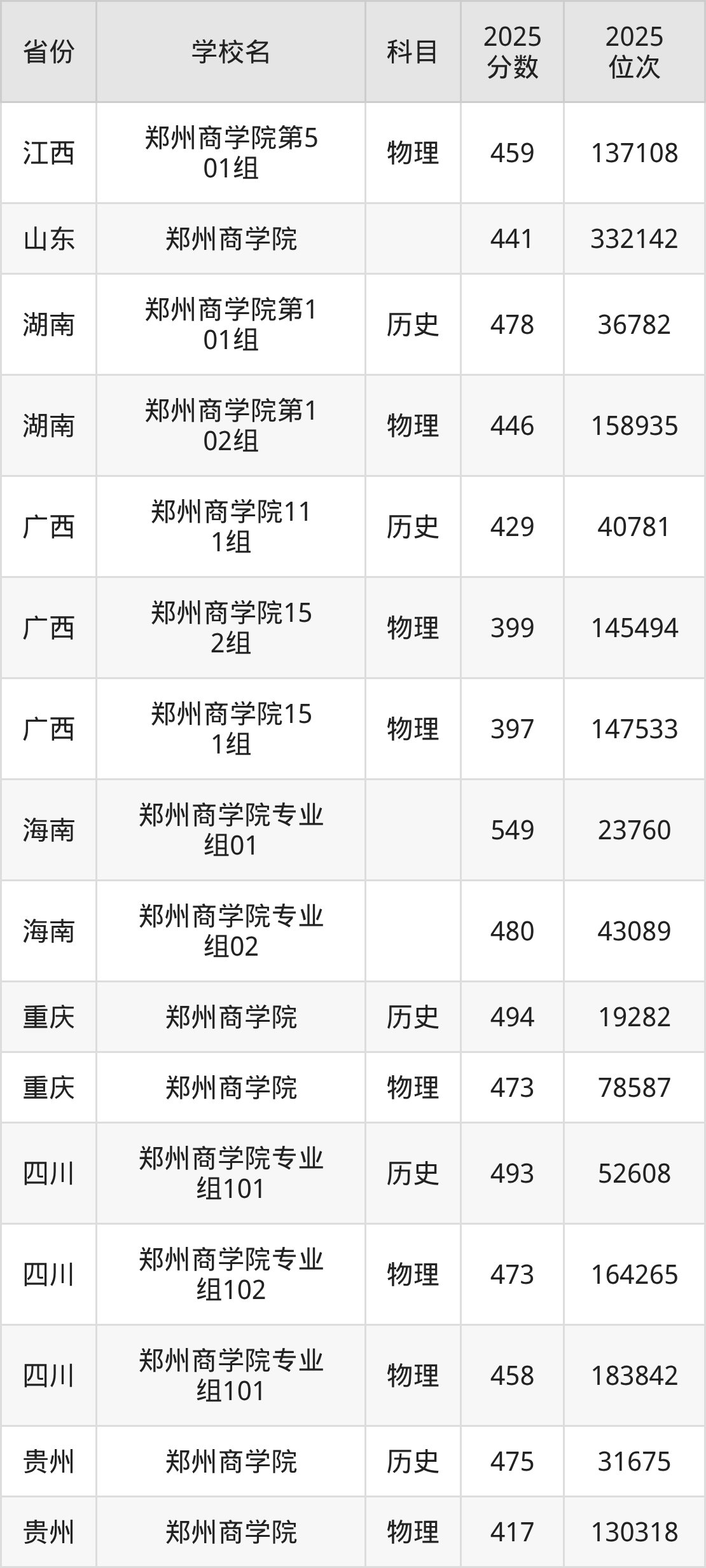 2025年郑州商学院历史类最低分484分(17758名)、物理类最低分465分(74194名)。