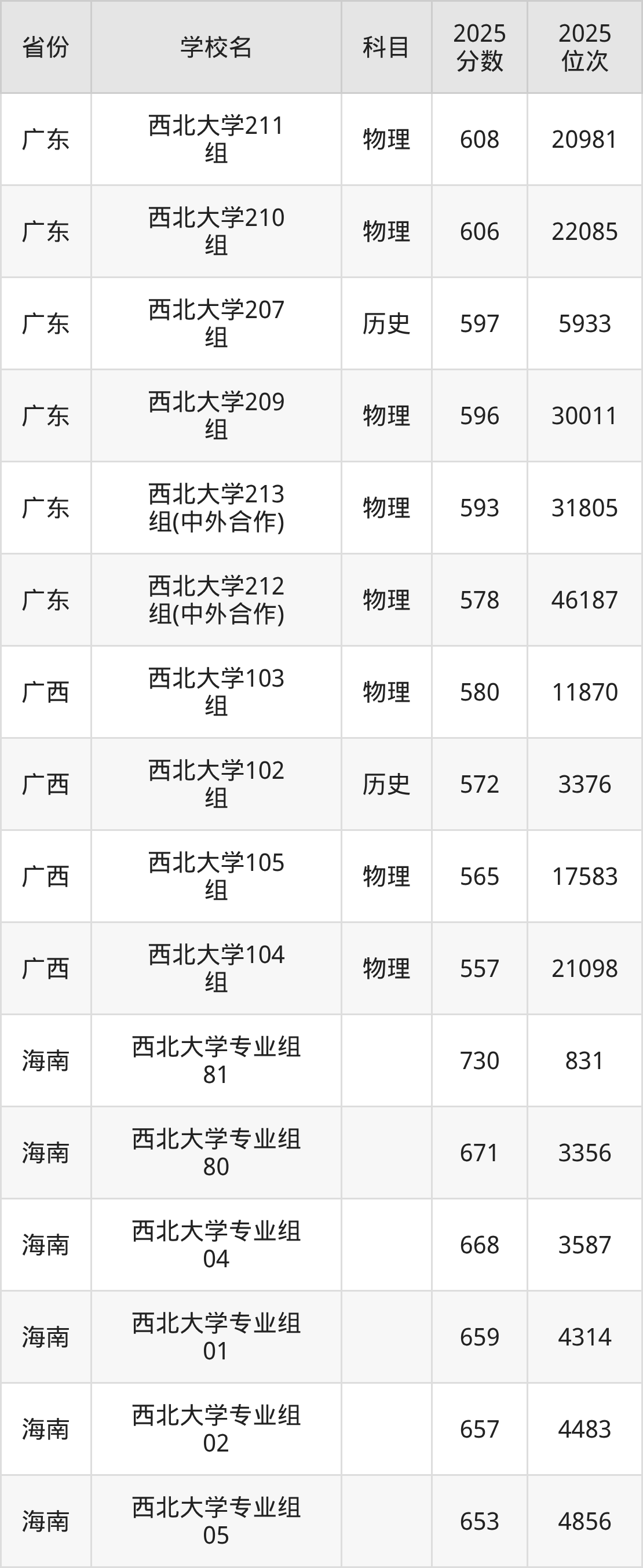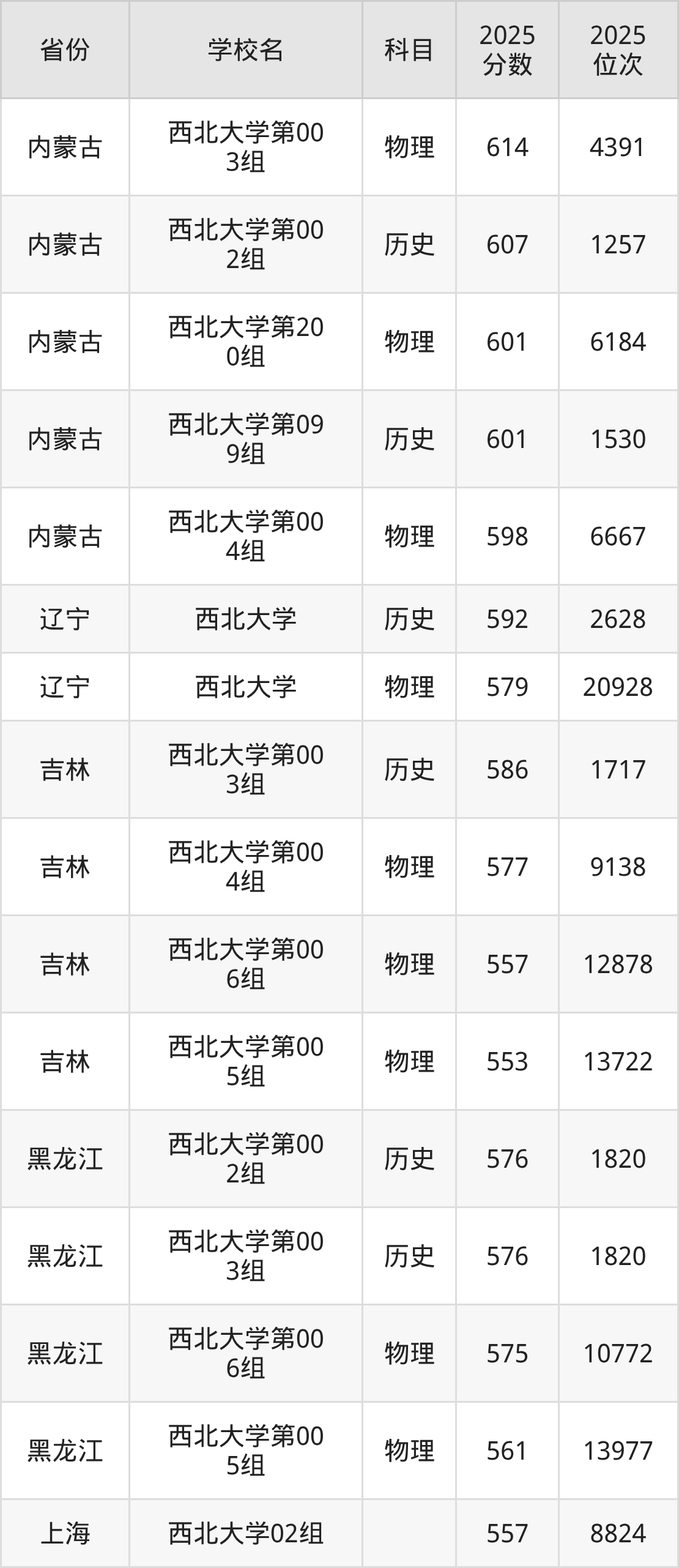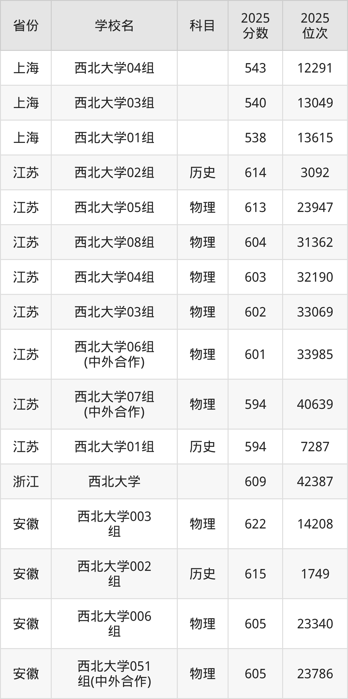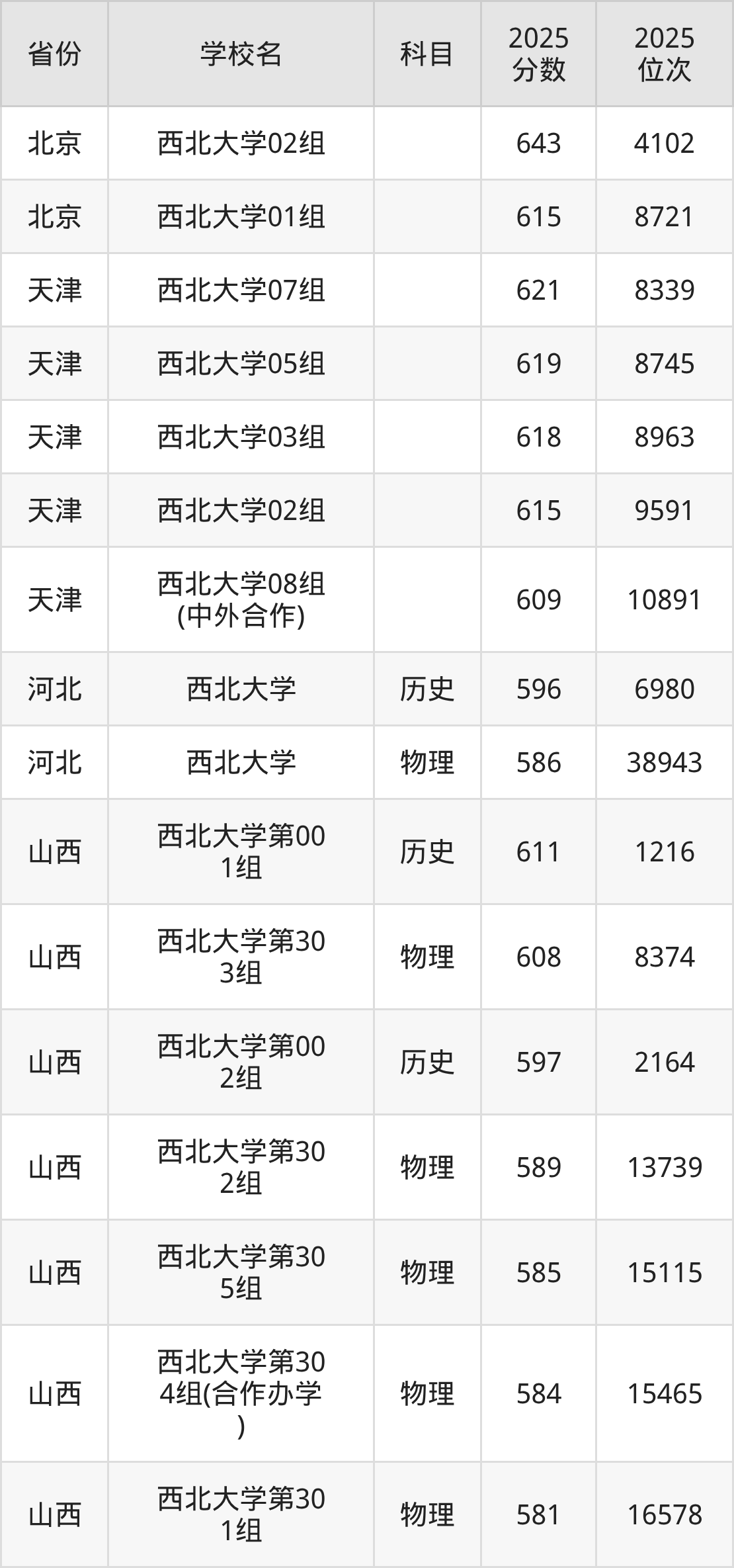 下面是西北大学2025年录取分数线各省汇总,一起来了解下吧。