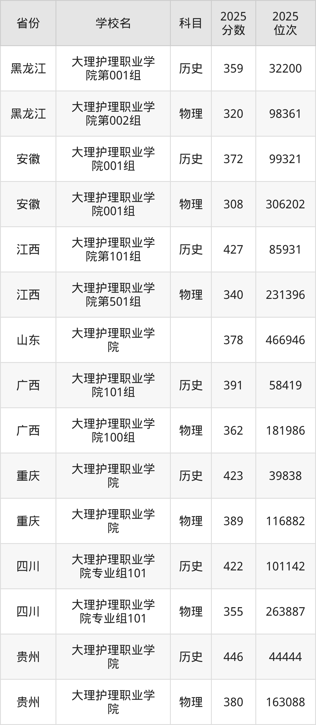 下面是大理护理职业学院2025年录取分数线各省汇总,一起来了解下吧。