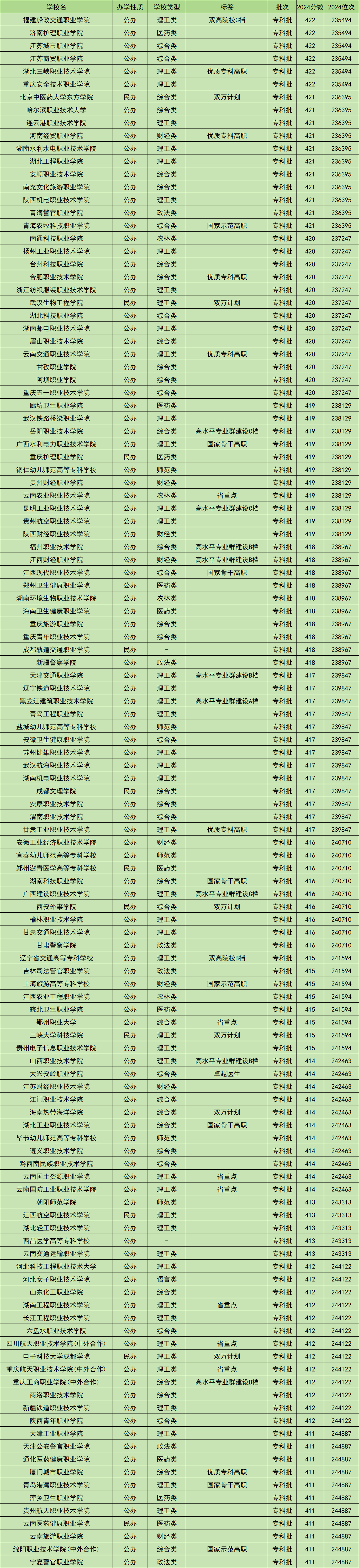 2024年高考24万名左右对应的分数线是422分到411分,能上的最好大学是福建船政交通职业学院,2024年最低录取位次是235494名,属于24万名左右可以冲一冲的学校。能上的分数线最低的大学是宁夏警官职业学院,2024年最低录取位次是244887名,属于24万名左右比较稳妥的学校。