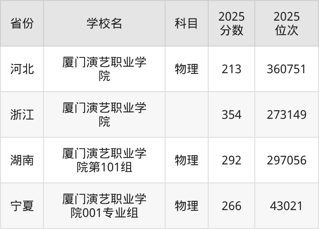 下面是厦门演艺职业学院2025年录取分数线各省汇总,一起来了解下吧。