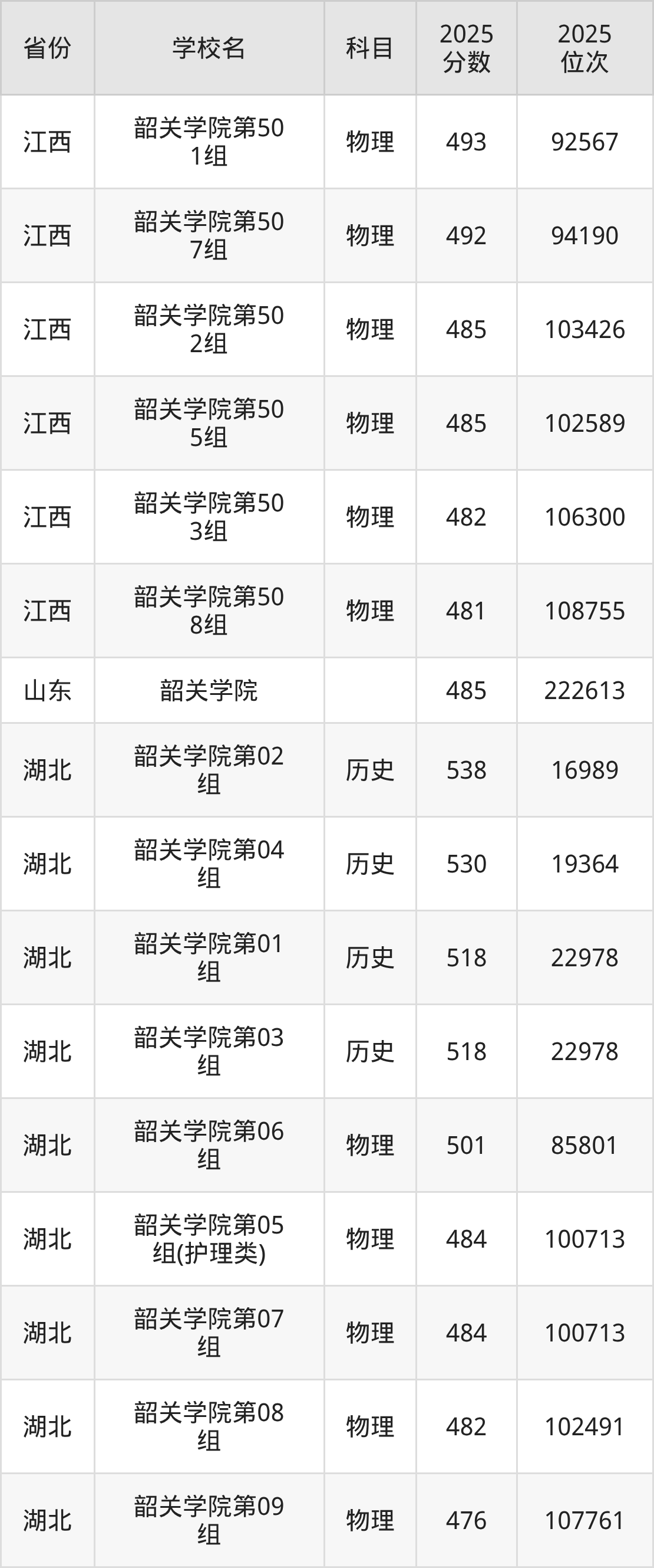 下面是韶关学院2025年录取分数线各省汇总,一起来了解下吧。