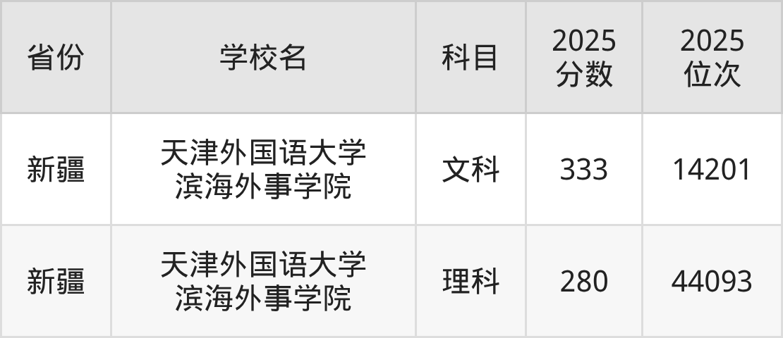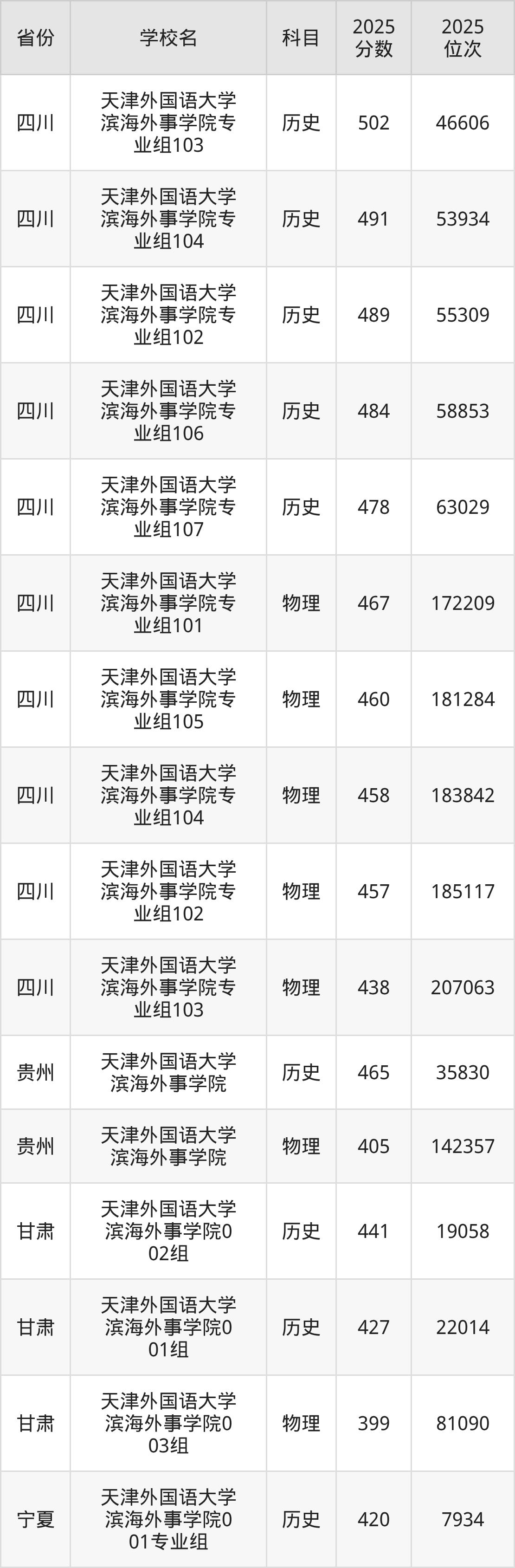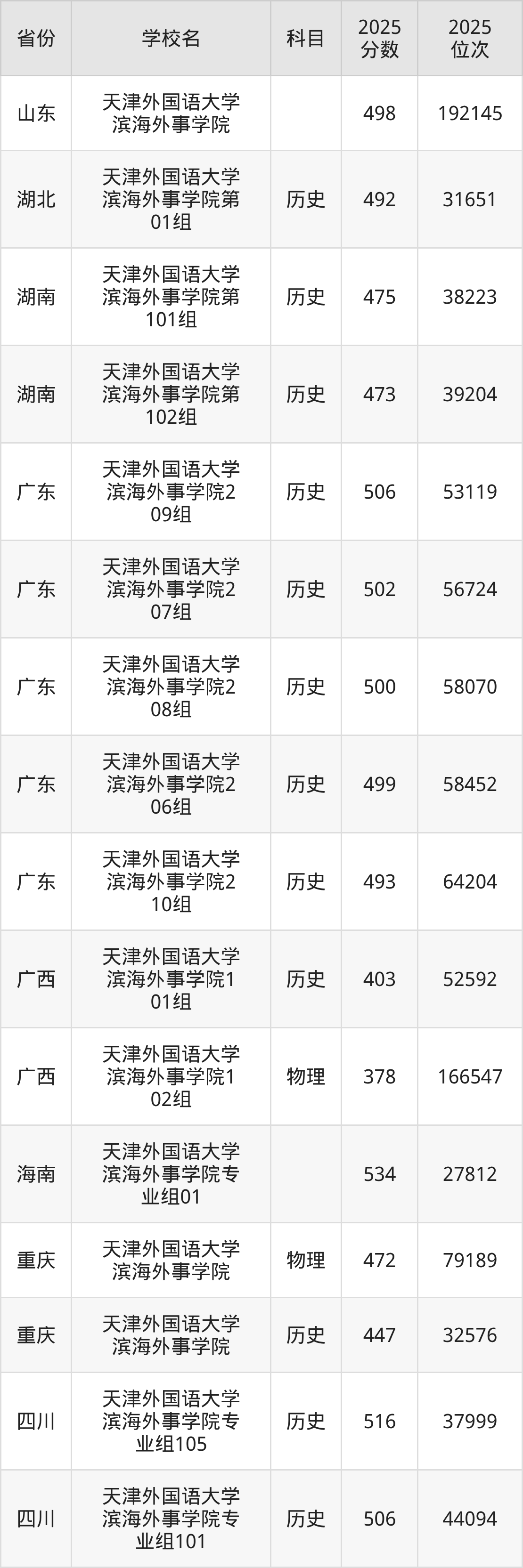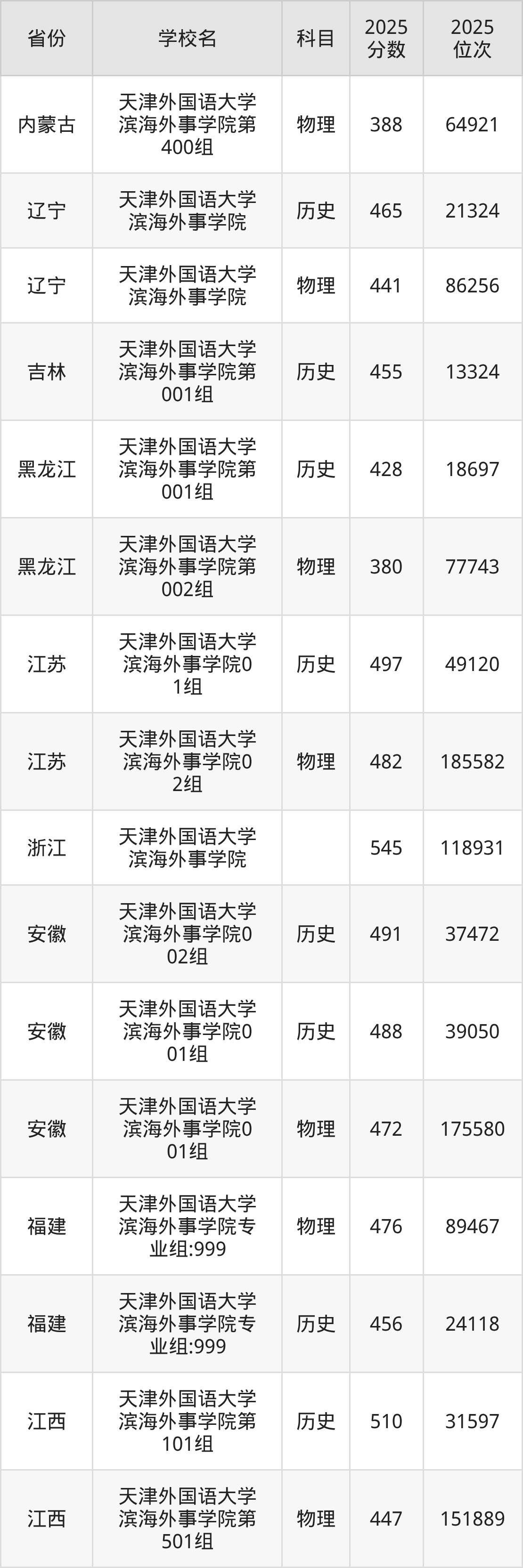 下面是天津外国语大学滨海外事学院2025年录取分数线各省汇总,一起来了解下吧。