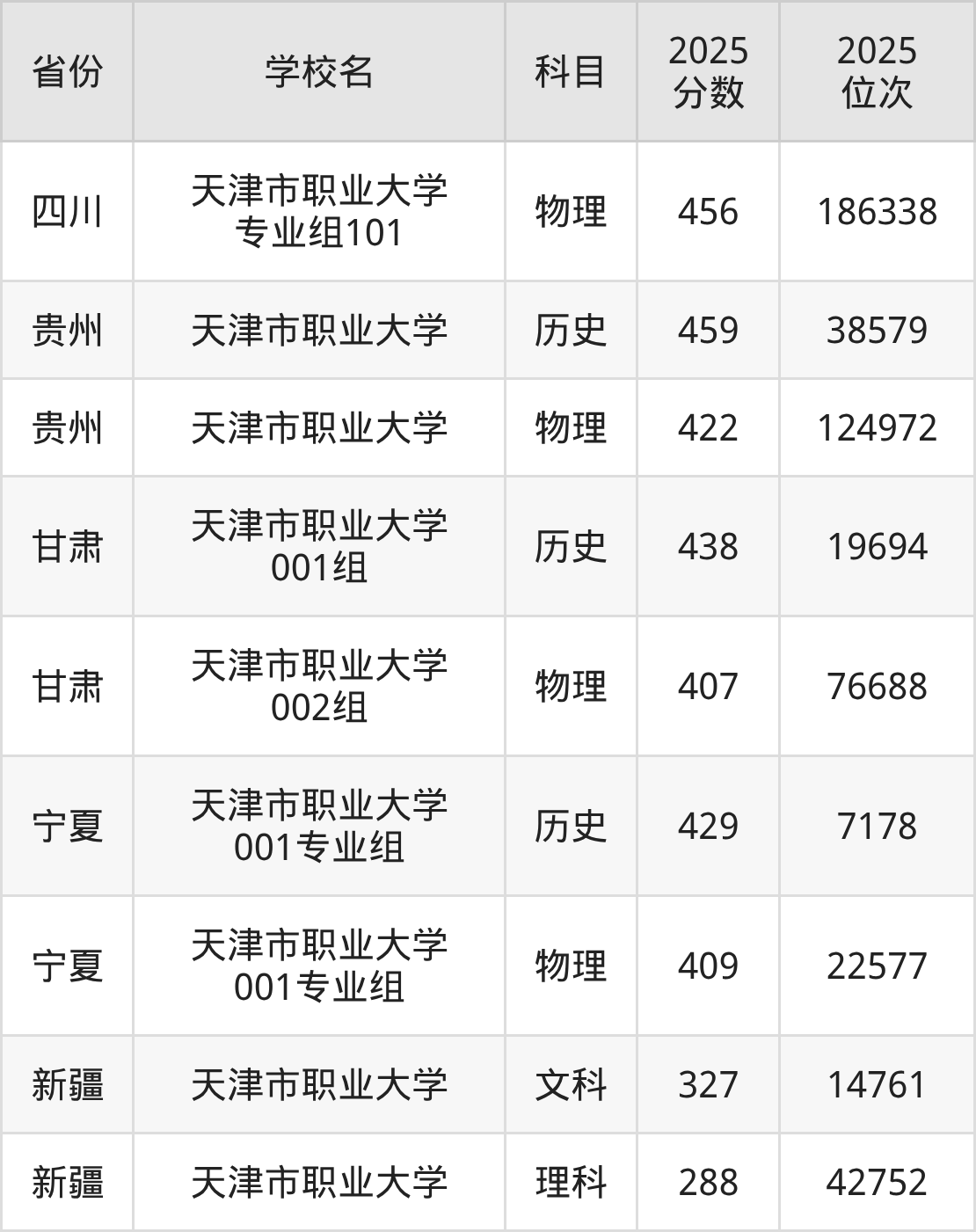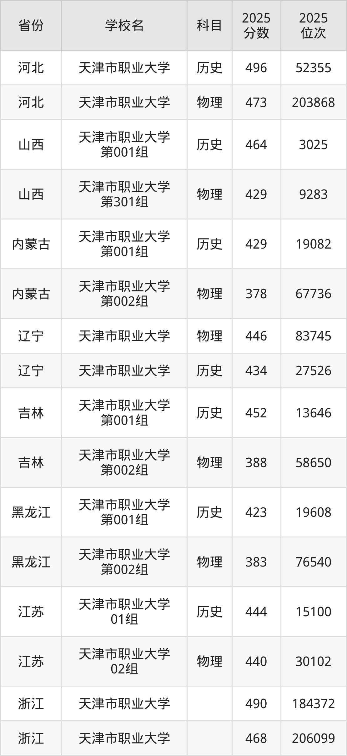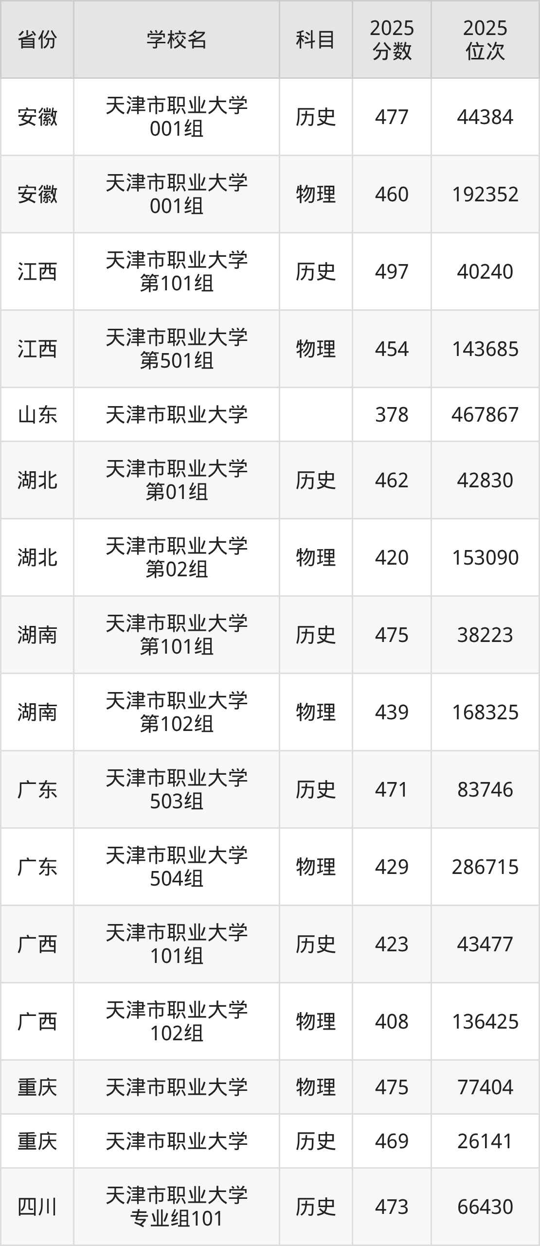 下面是天津市职业大学2025年录取分数线各省汇总,一起来了解下吧。
