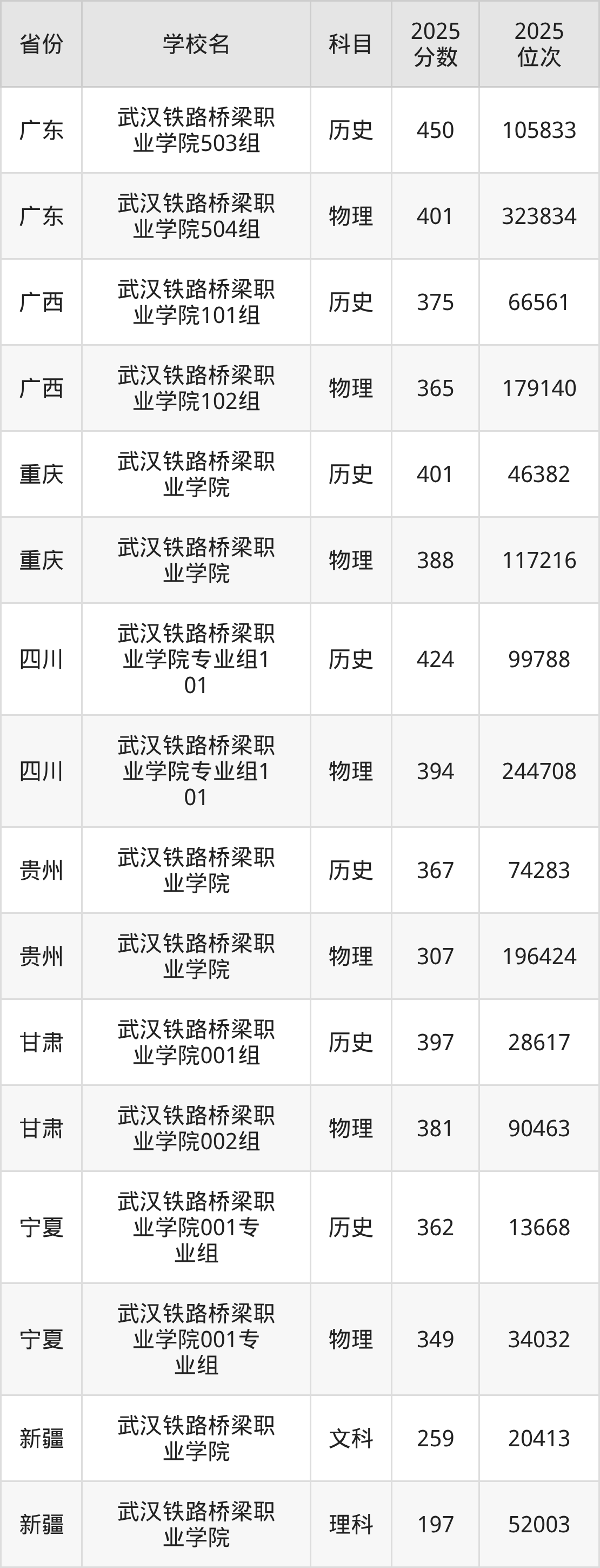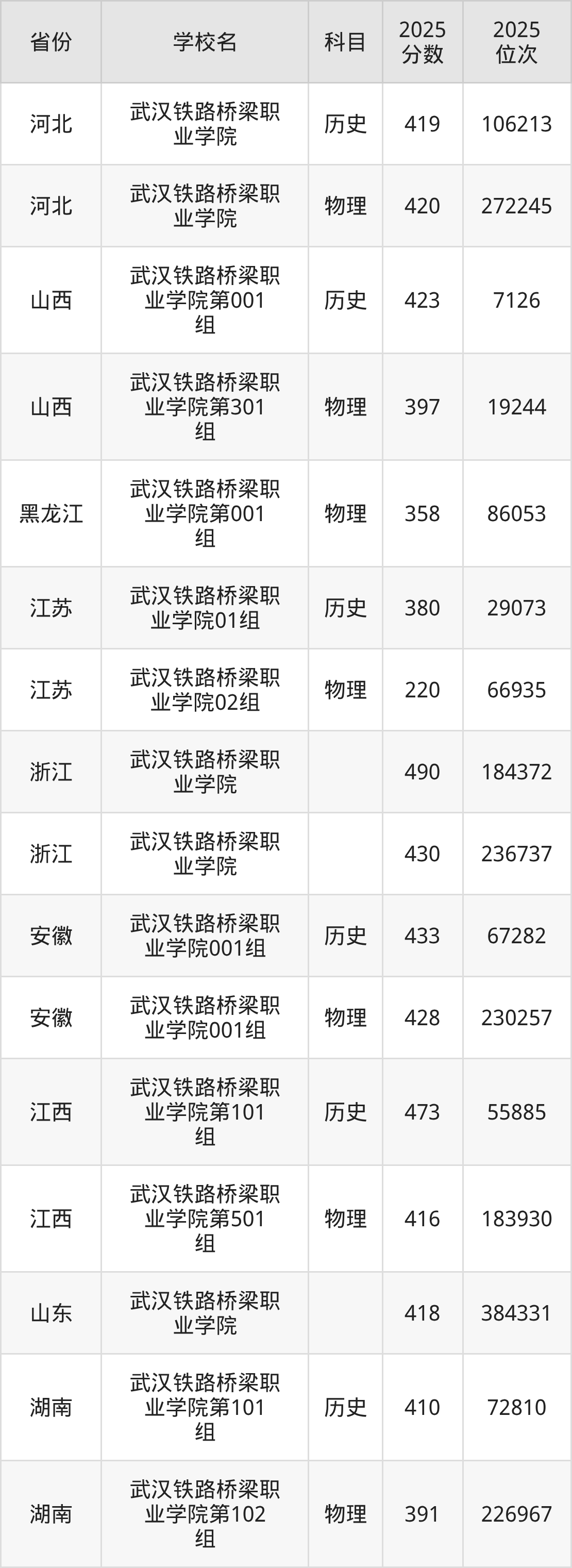 下面是武汉铁路桥梁职业学院2025年录取分数线各省汇总,一起来了解下吧。