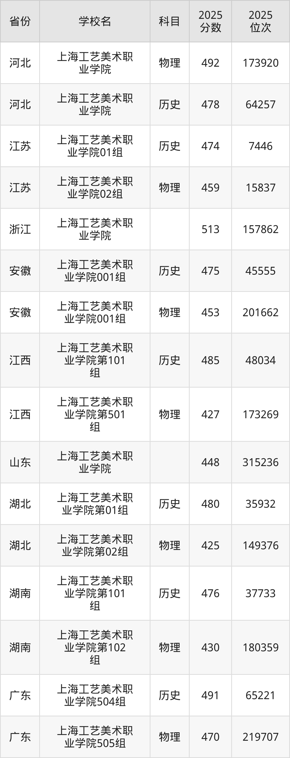 下面是上海工艺美术职业学院2025年录取分数线各省汇总,一起来了解下吧。