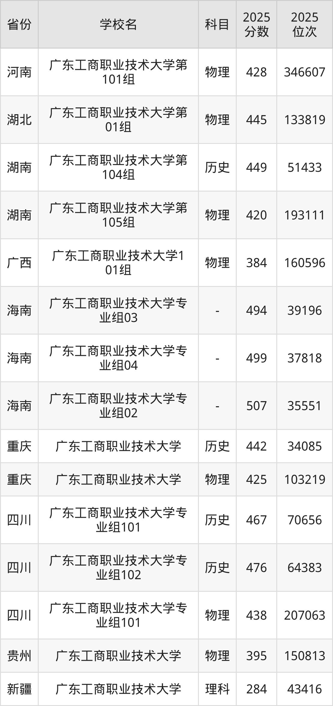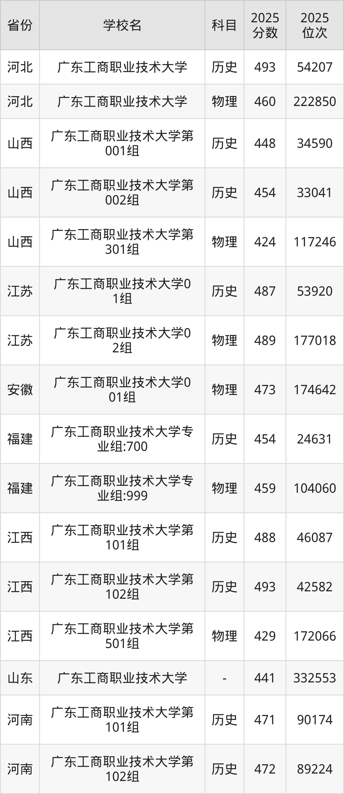下面是广东工商职业技术大学2025年录取分数线各省汇总,一起来了解下吧。