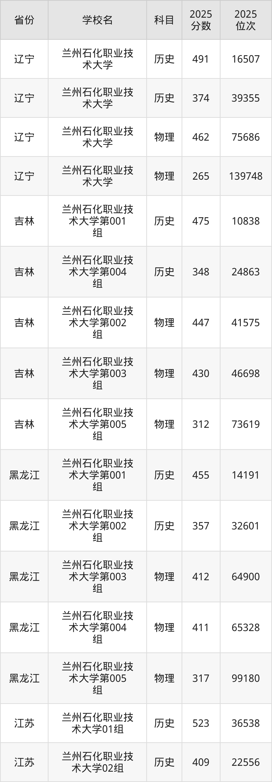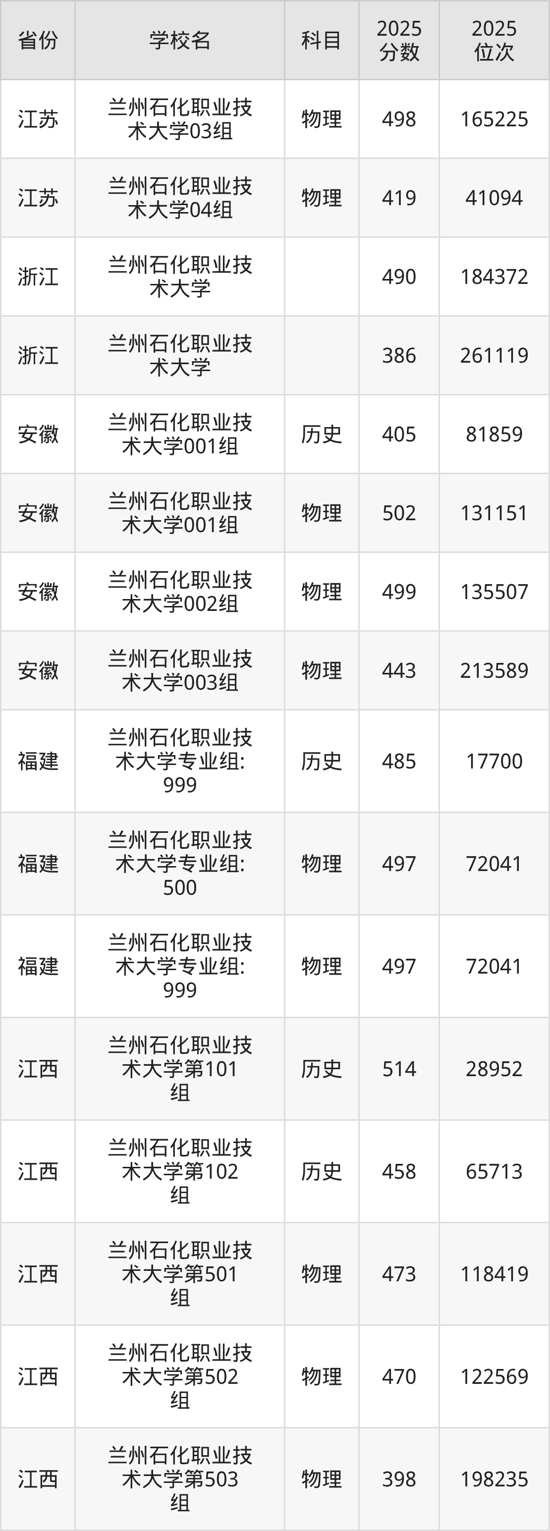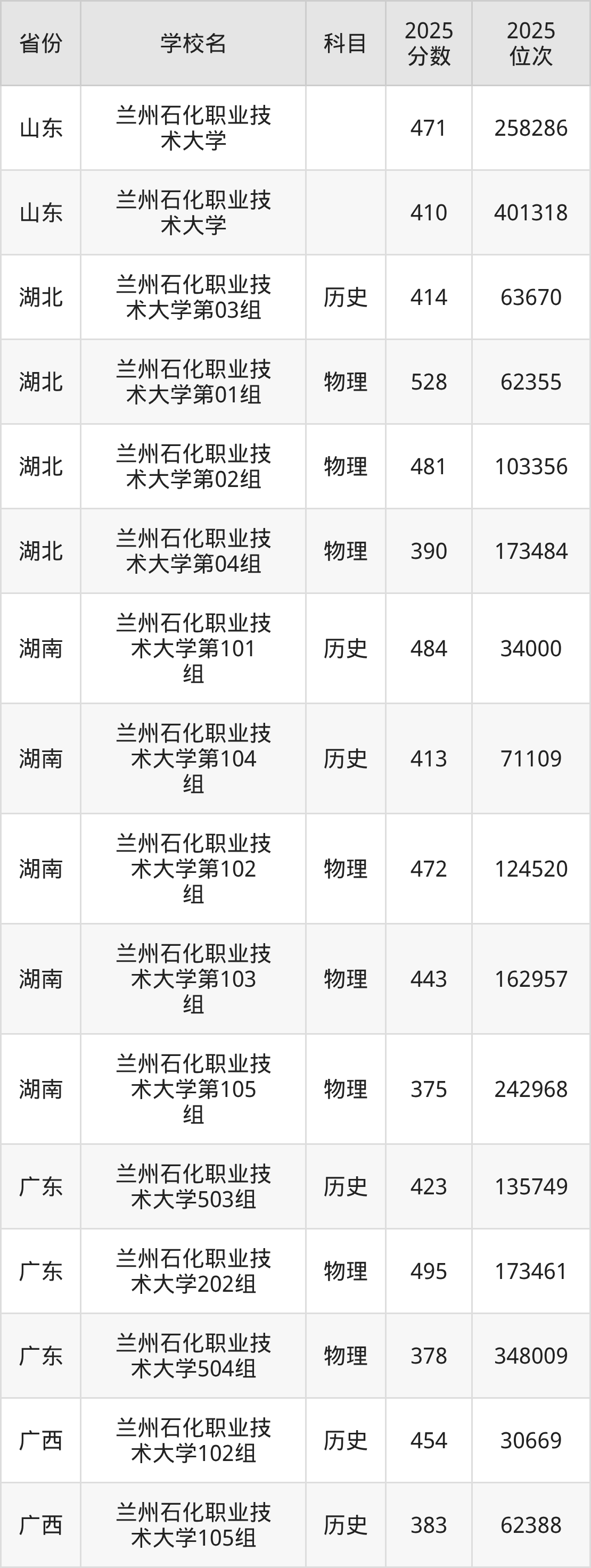 下面是兰州石化职业技术大学2025年录取分数线各省汇总,一起来了解下吧。