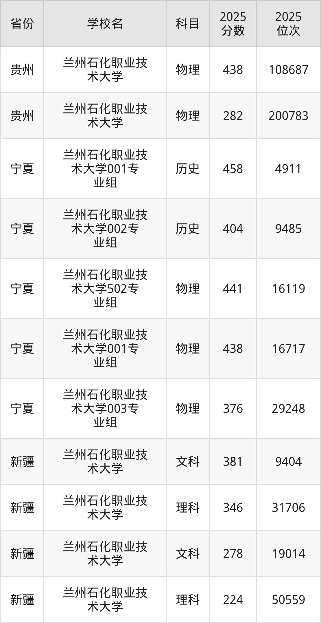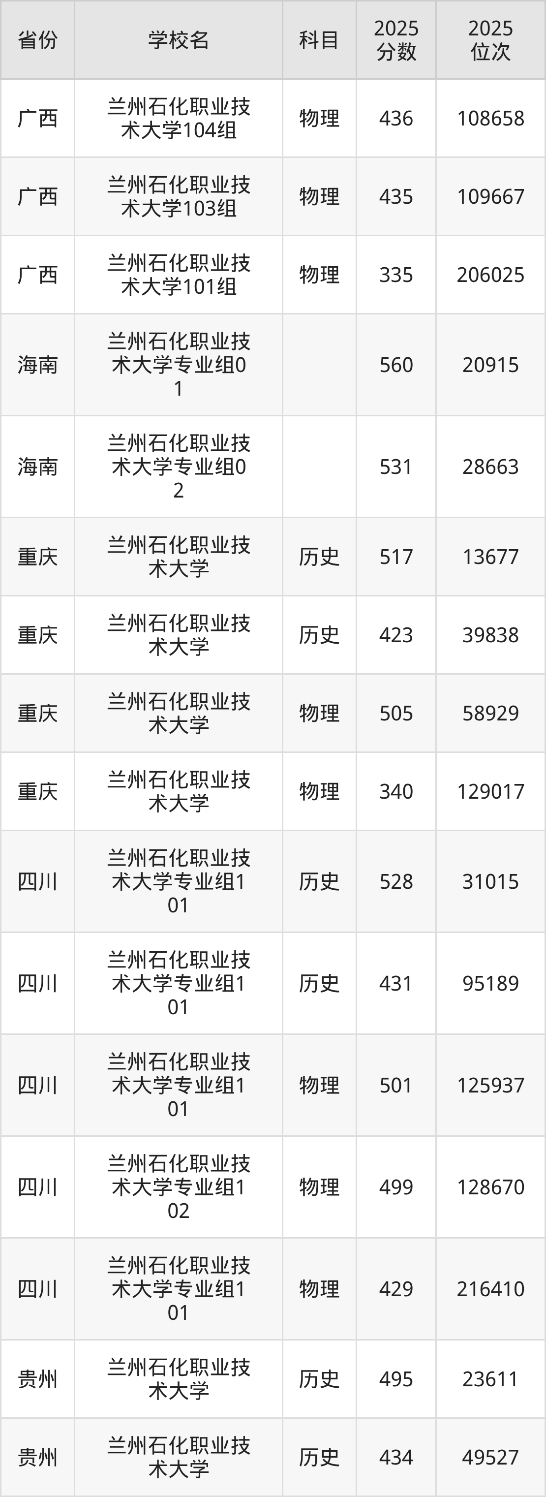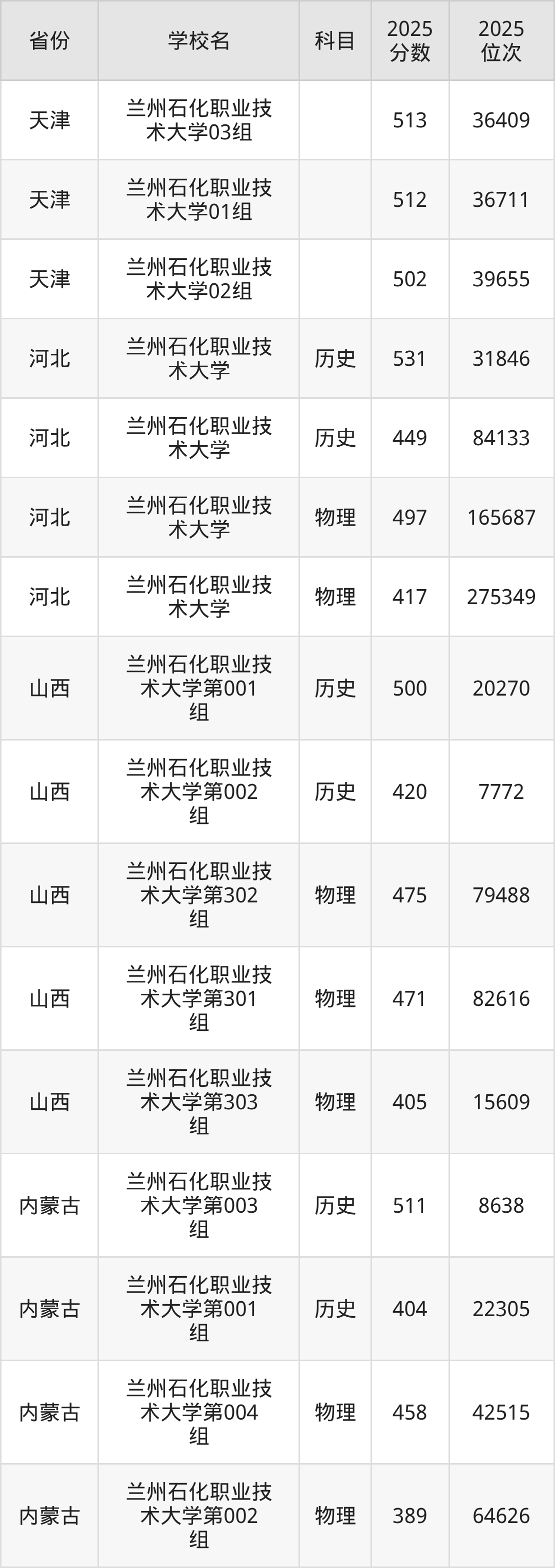 下面是兰州石化职业技术大学2025年录取分数线各省汇总,一起来了解下吧。