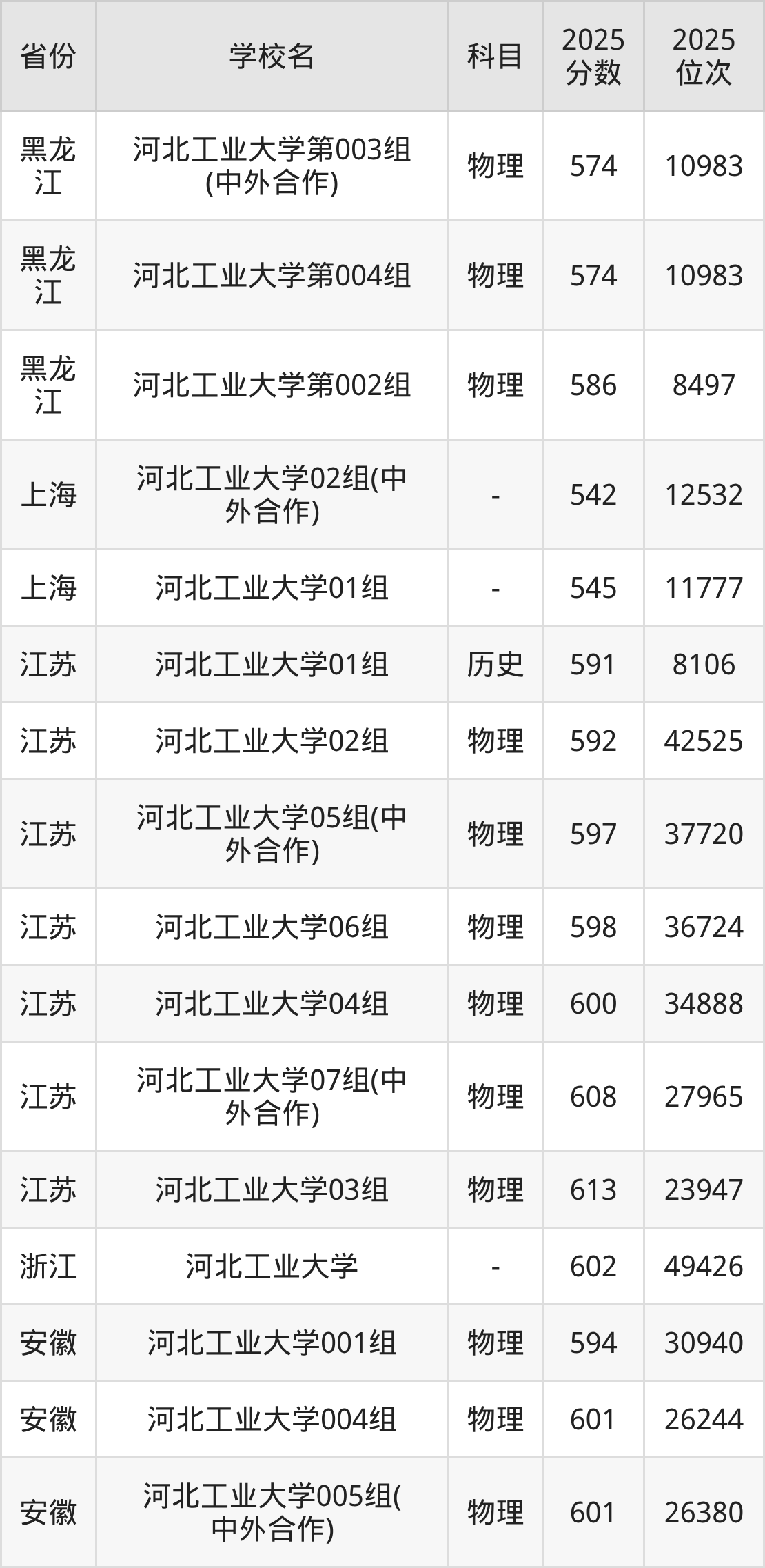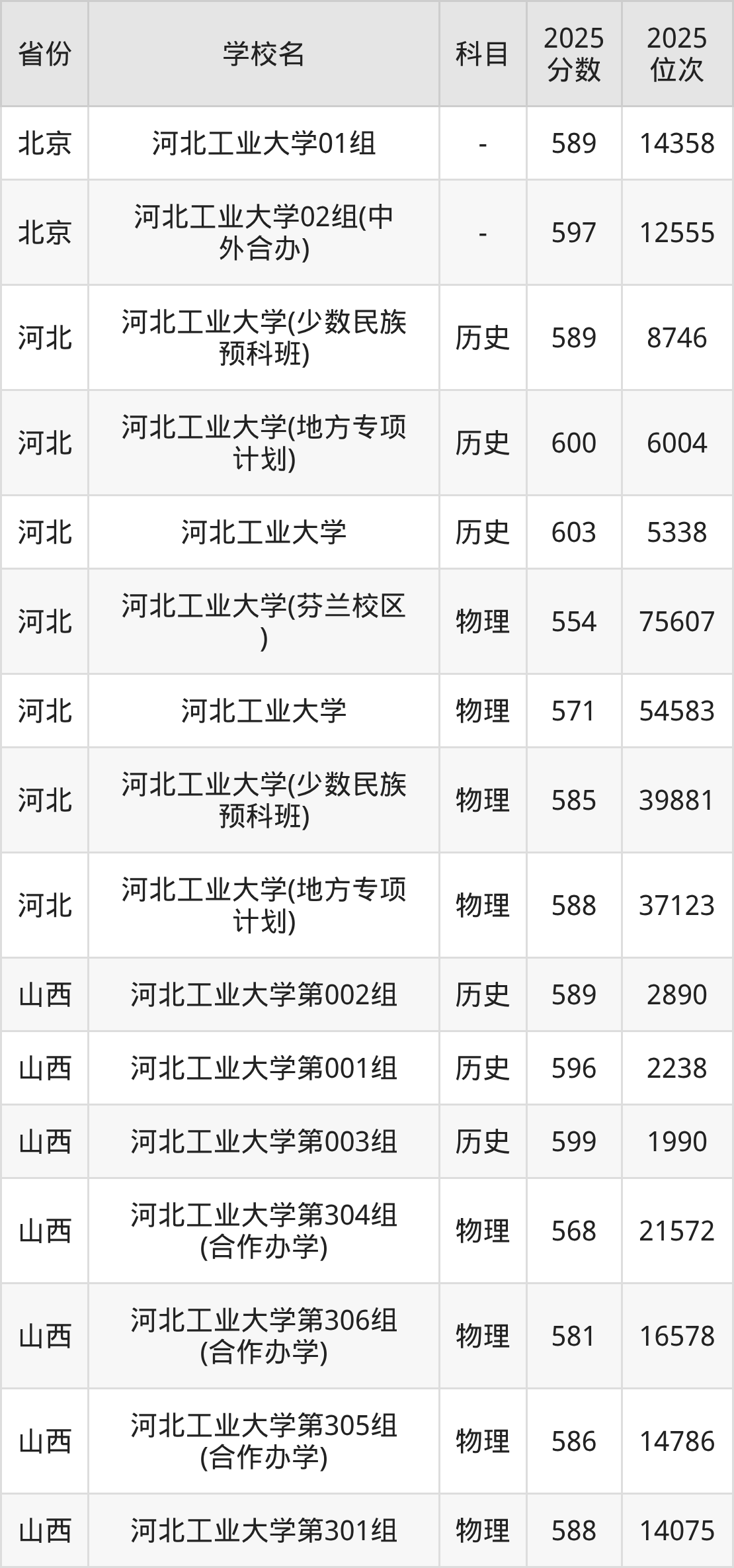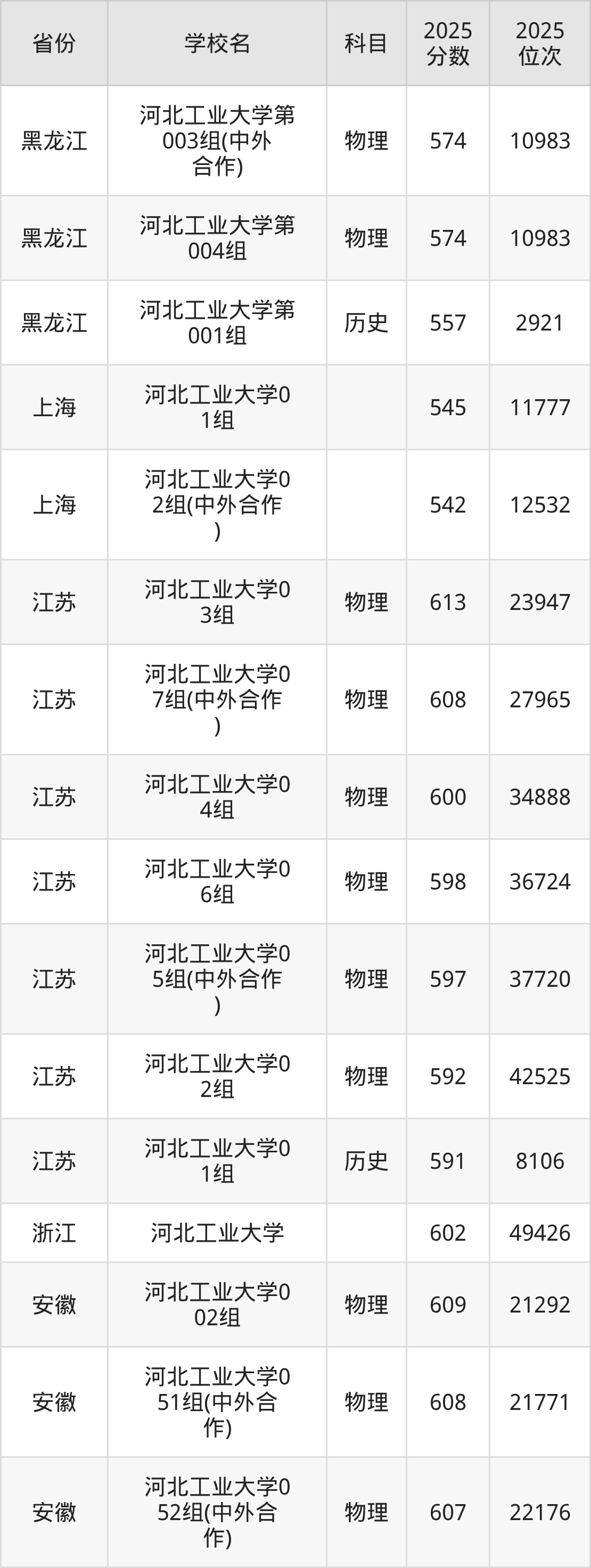 下面是河北工业大学2025年录取分数线各省汇总,一起来了解下吧。