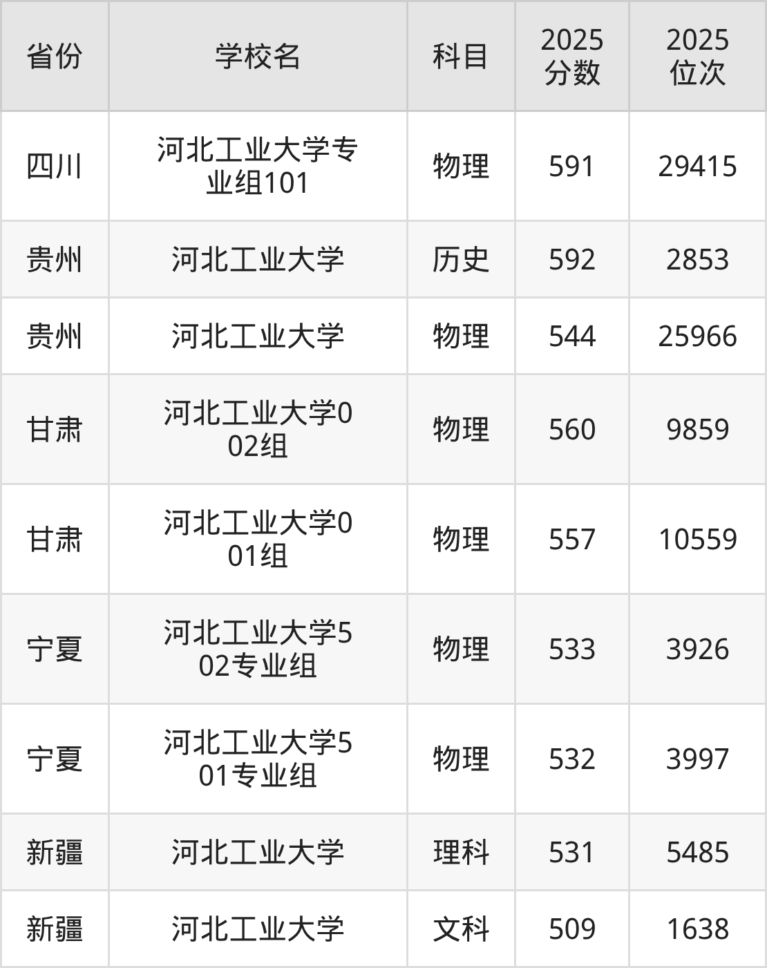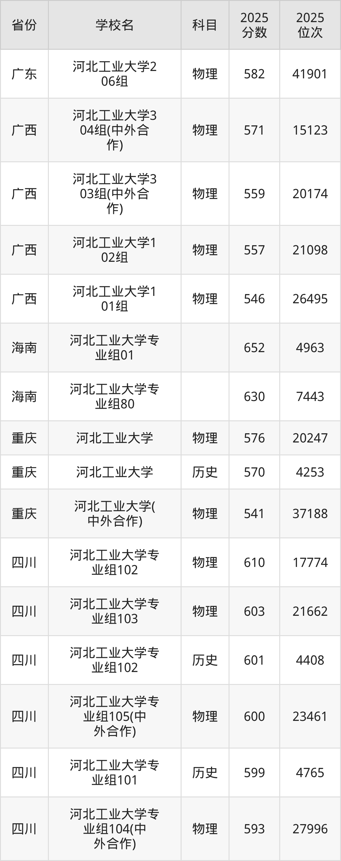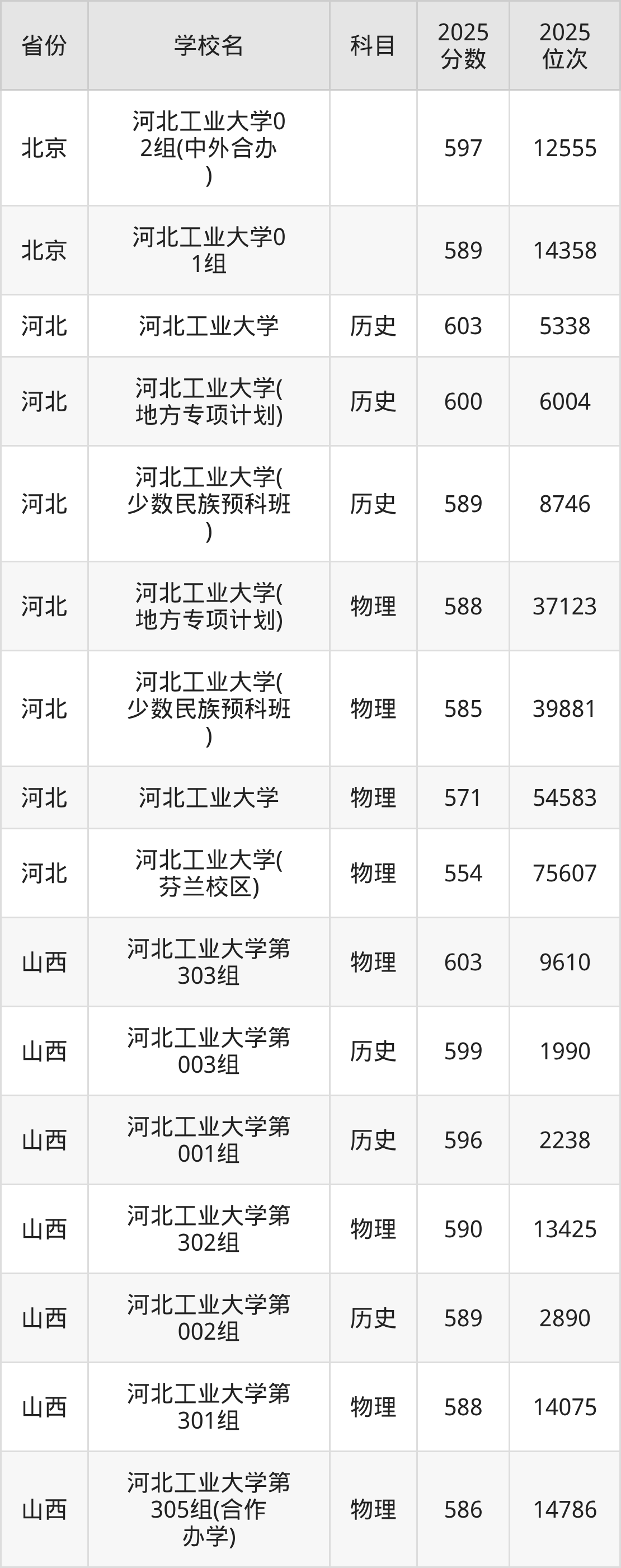下面是河北工业大学2025年录取分数线各省汇总,一起来了解下吧。