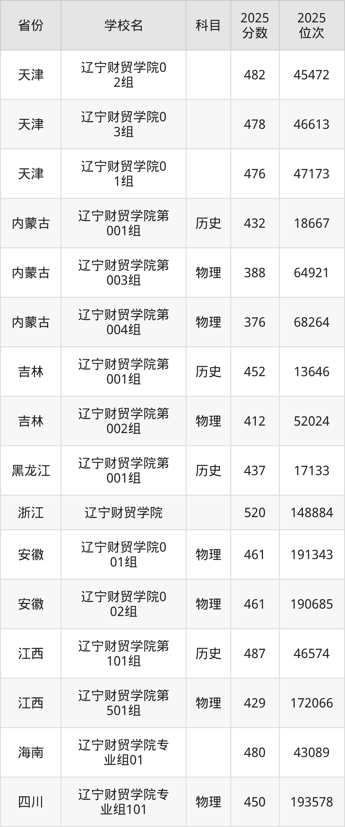 2025年辽宁财贸学院历史类最低分458分(22672名)、物理类最低分367分(118109名)。