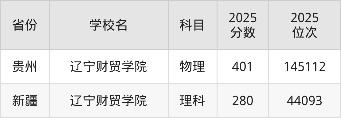 | 学校名 | 科目 | 2025 分数 | 2025 位次 |