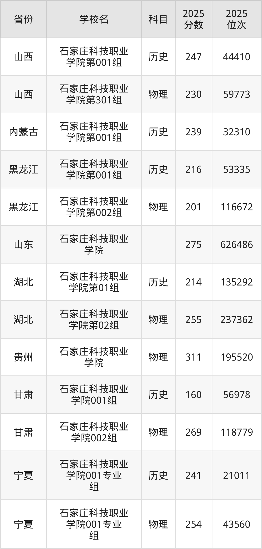 | 石家庄科技职业 学院 | 历史 | 296 | 197199 |