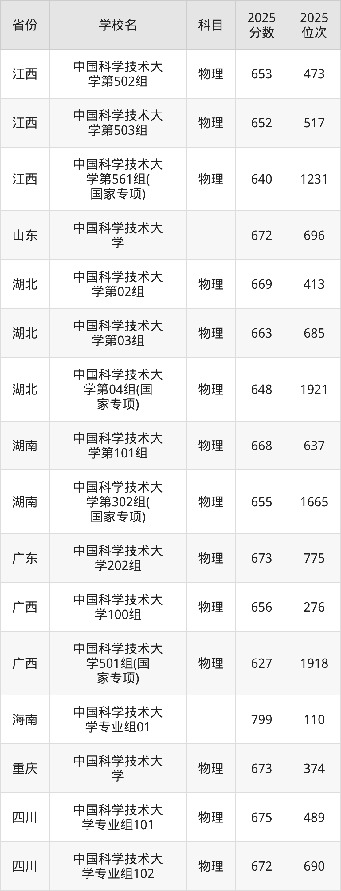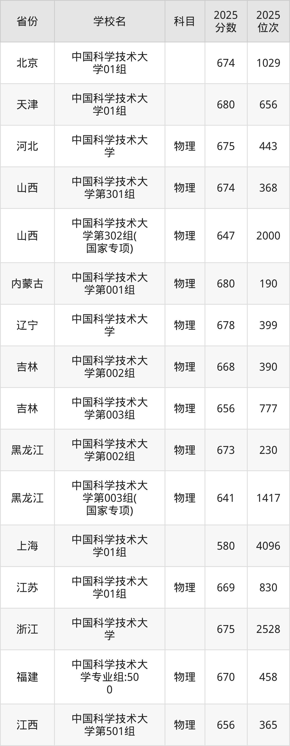 2025年中国科学技术大学物理类最低分673分(634名)。