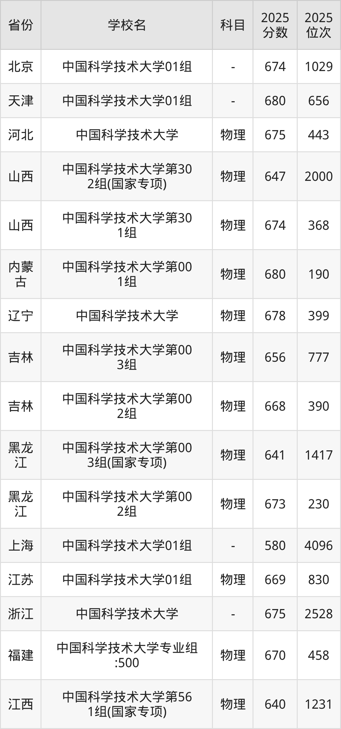 下面是中国科学技术大学2025年录取分数线各省汇总,一起来了解下吧。