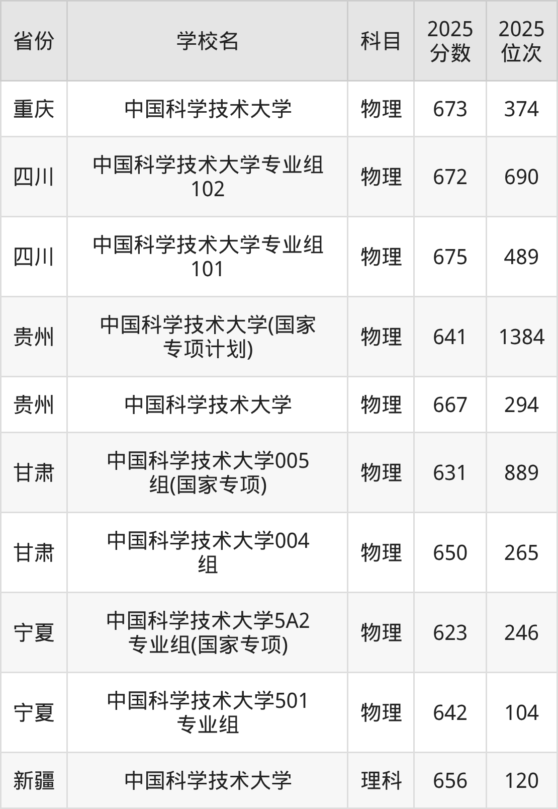 2025年中国科学技术大学在省内,物理类最低分是673分,对应位次是634名。