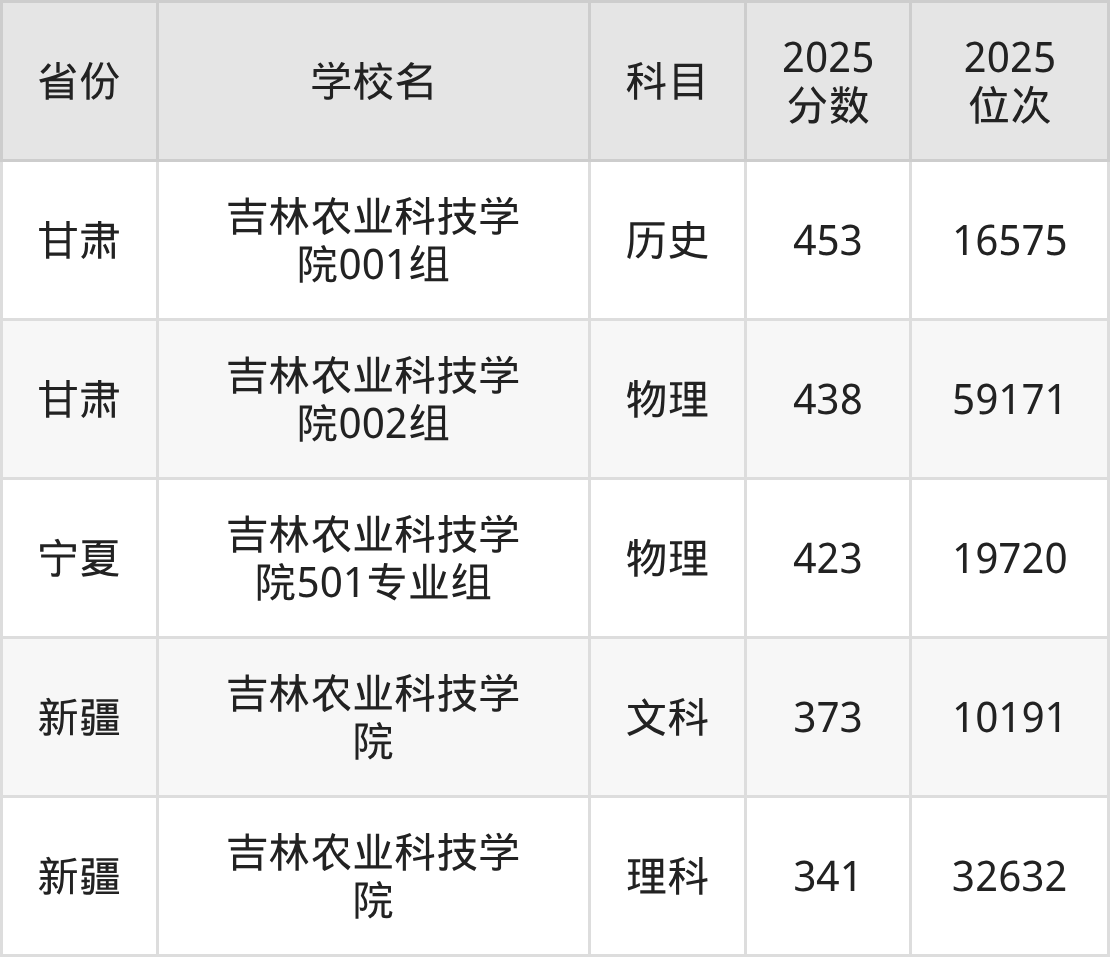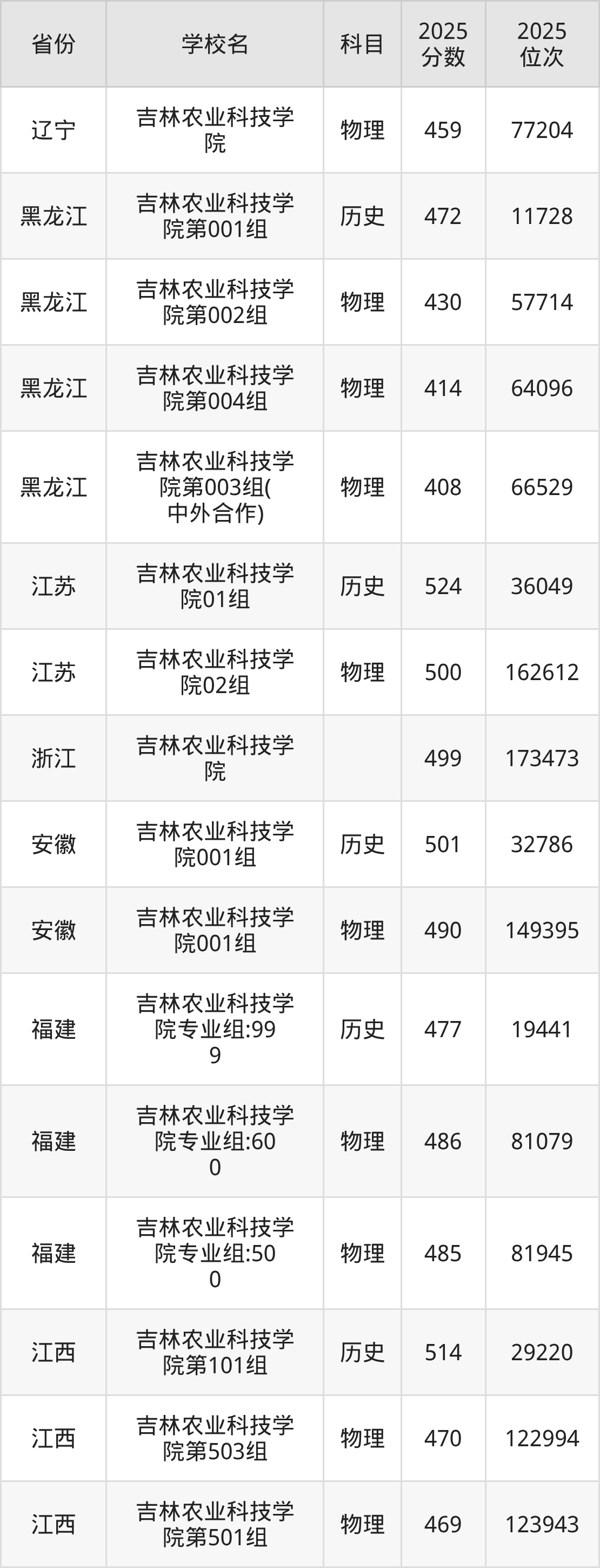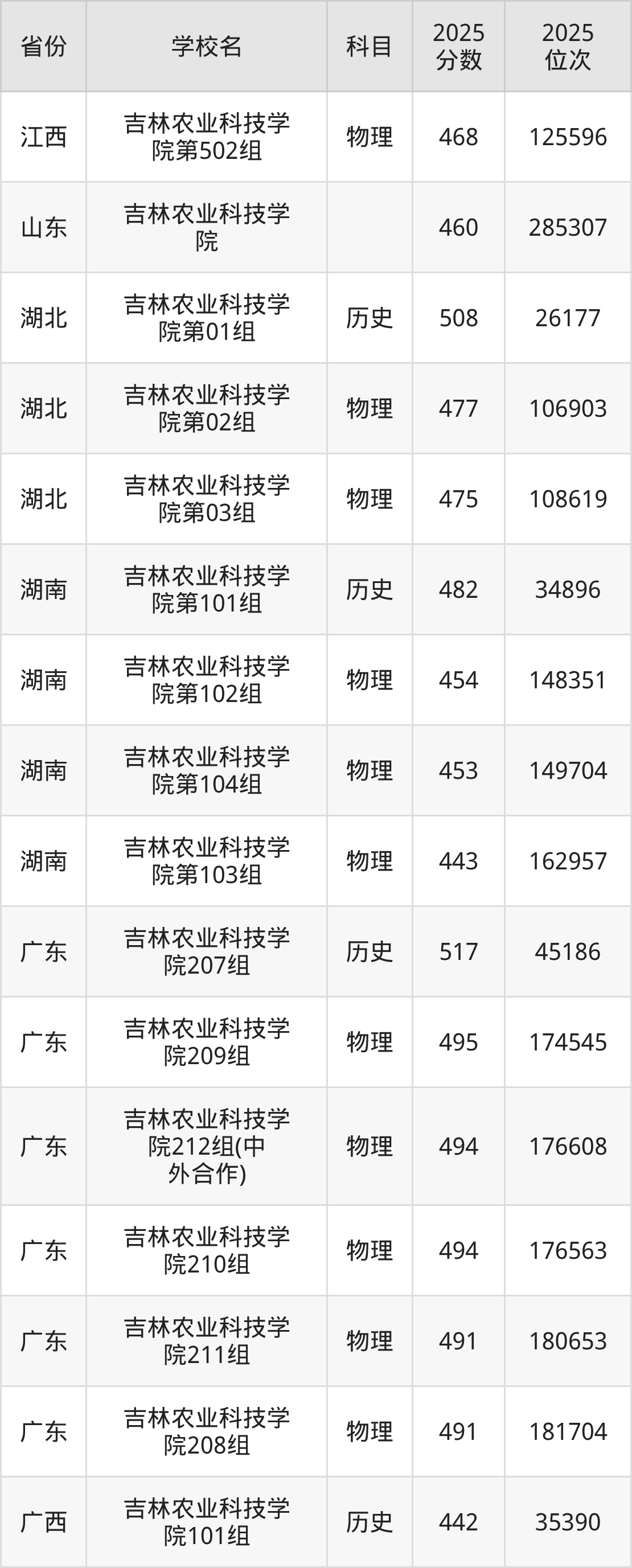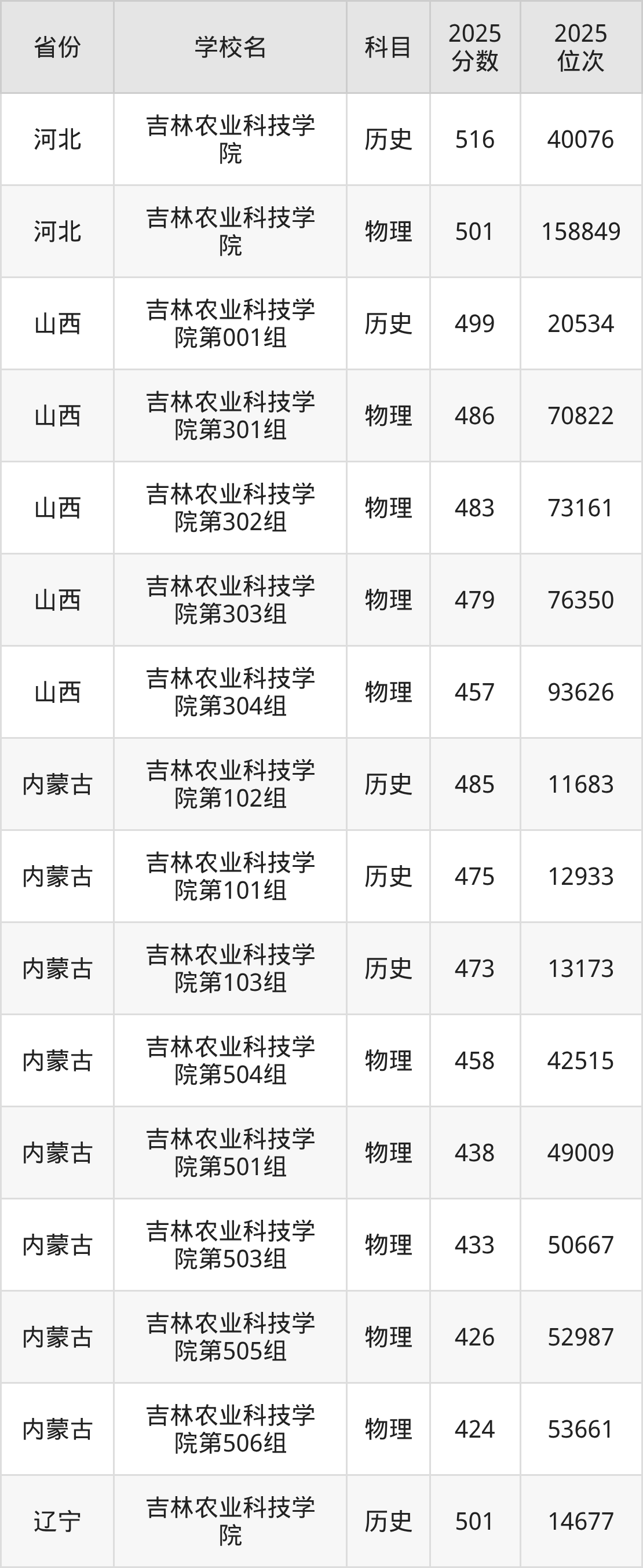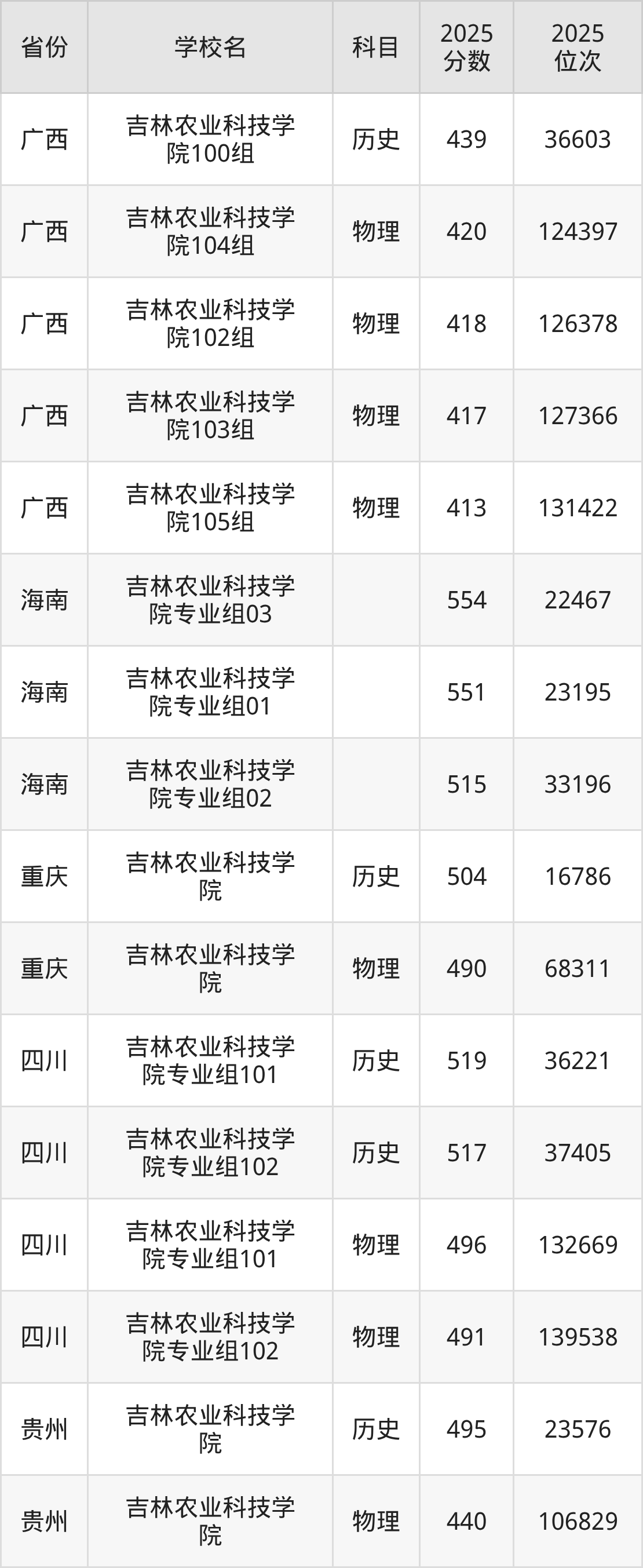 2025年吉林农业科技学院历史类最低分453分(13530名)、物理类最低分407分(53486名)。