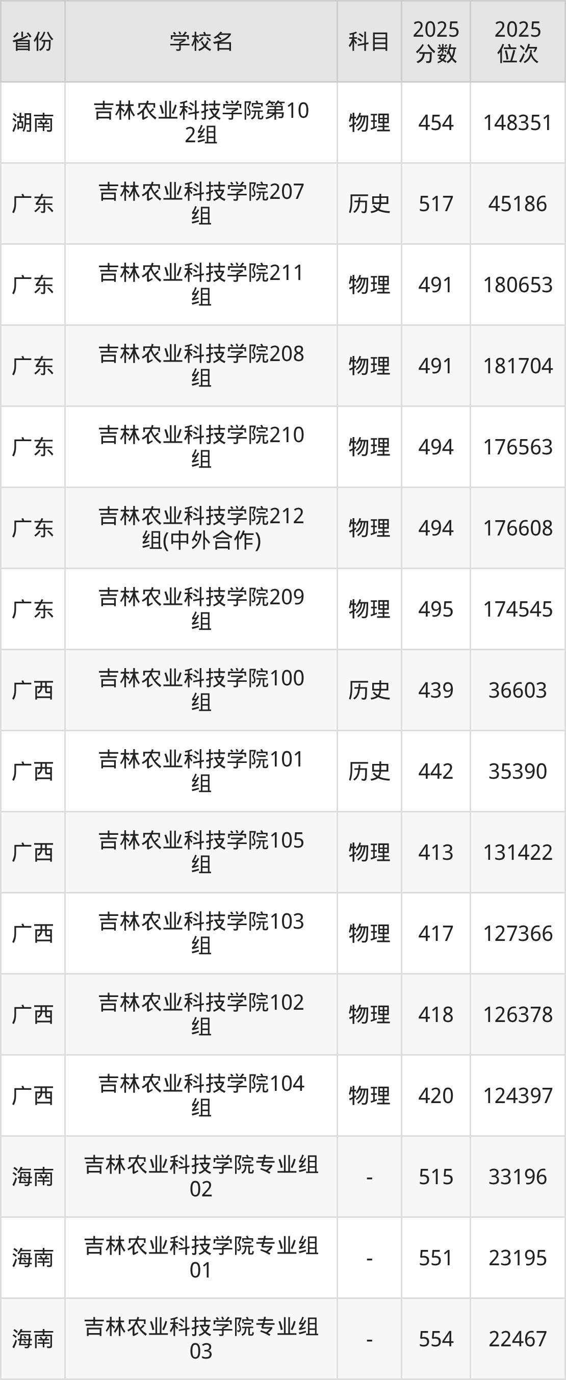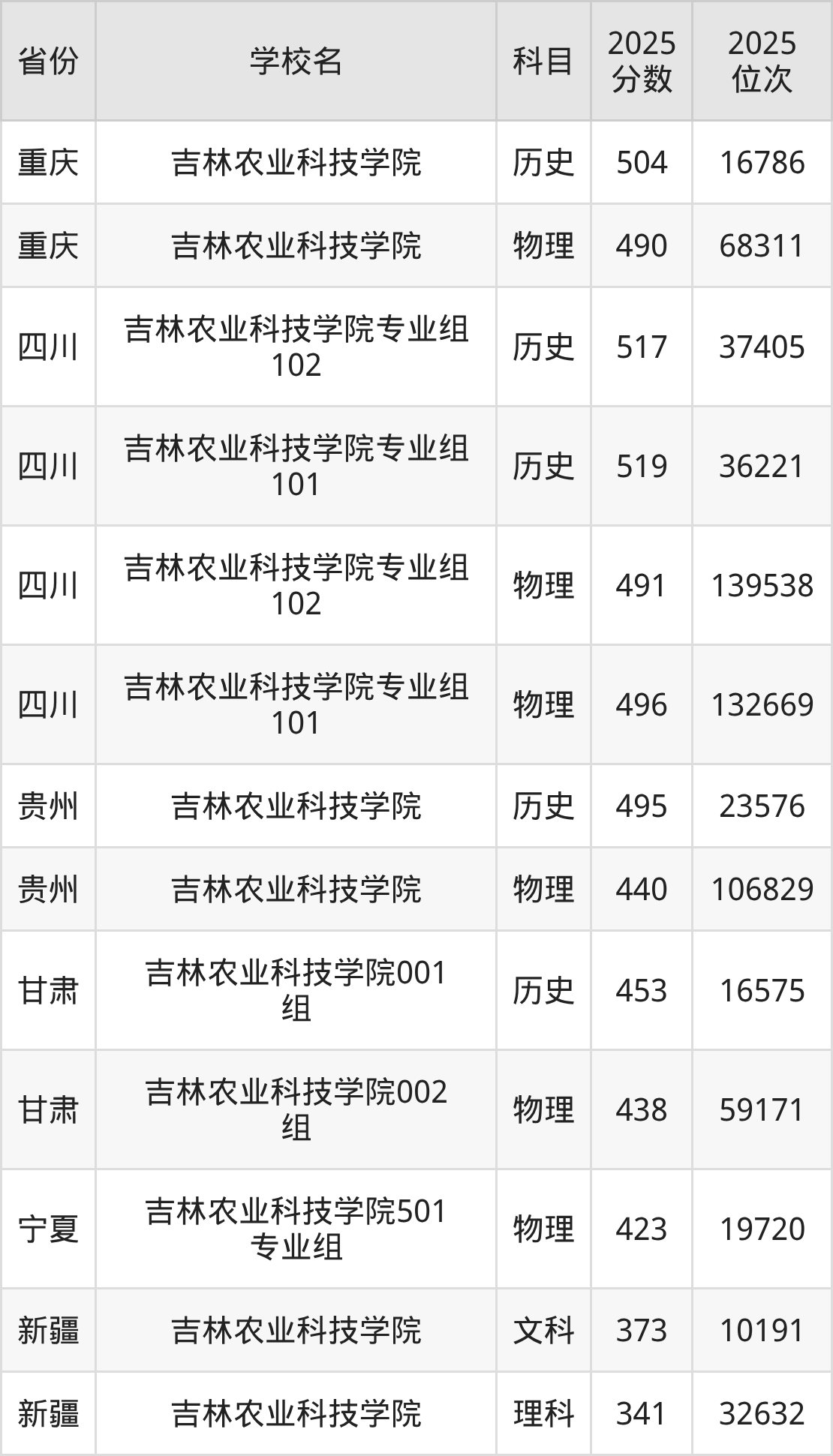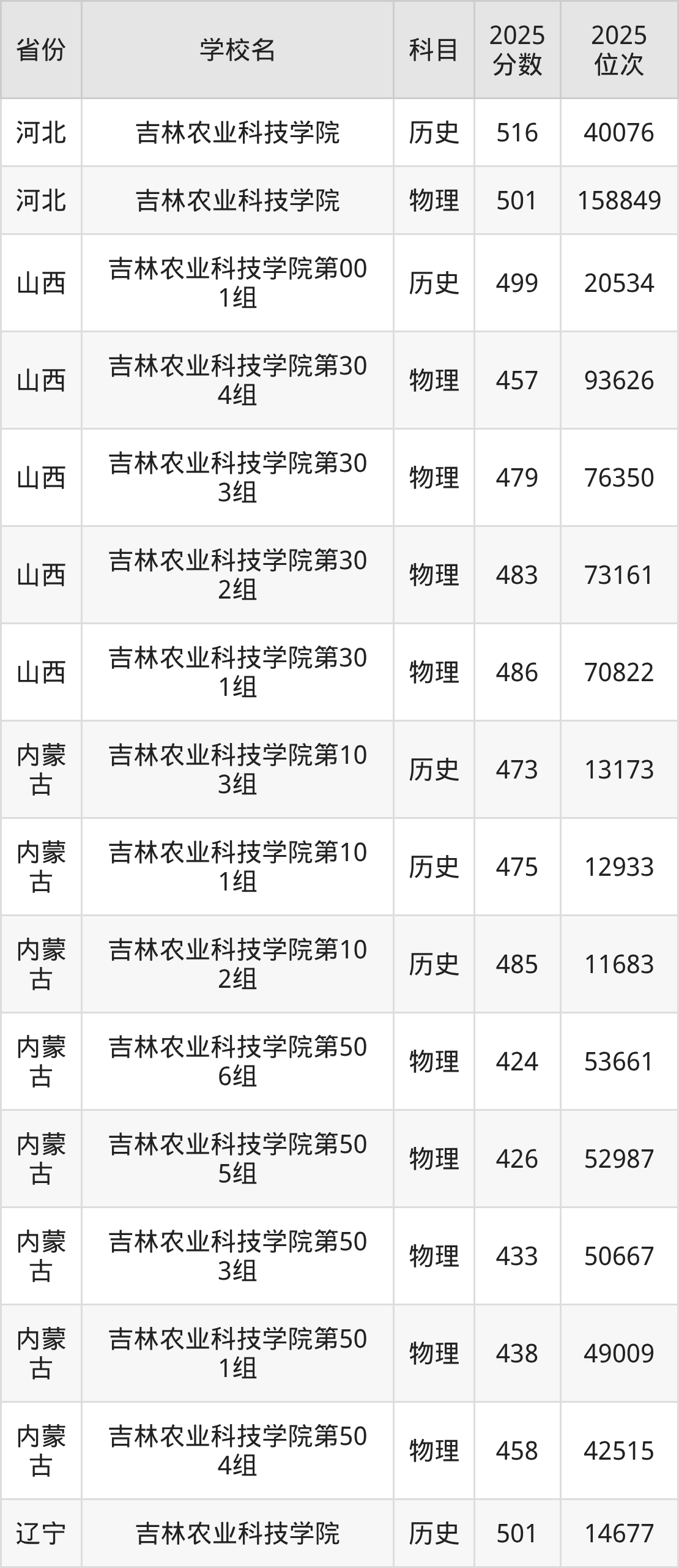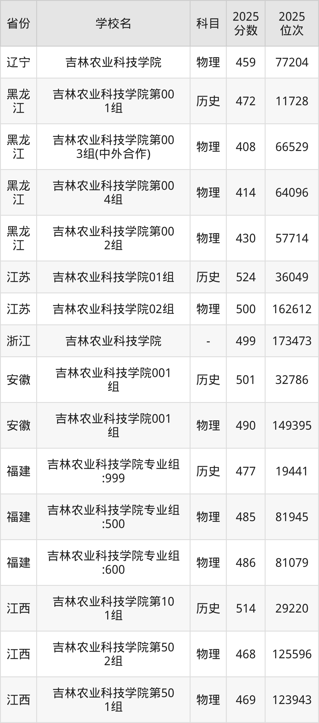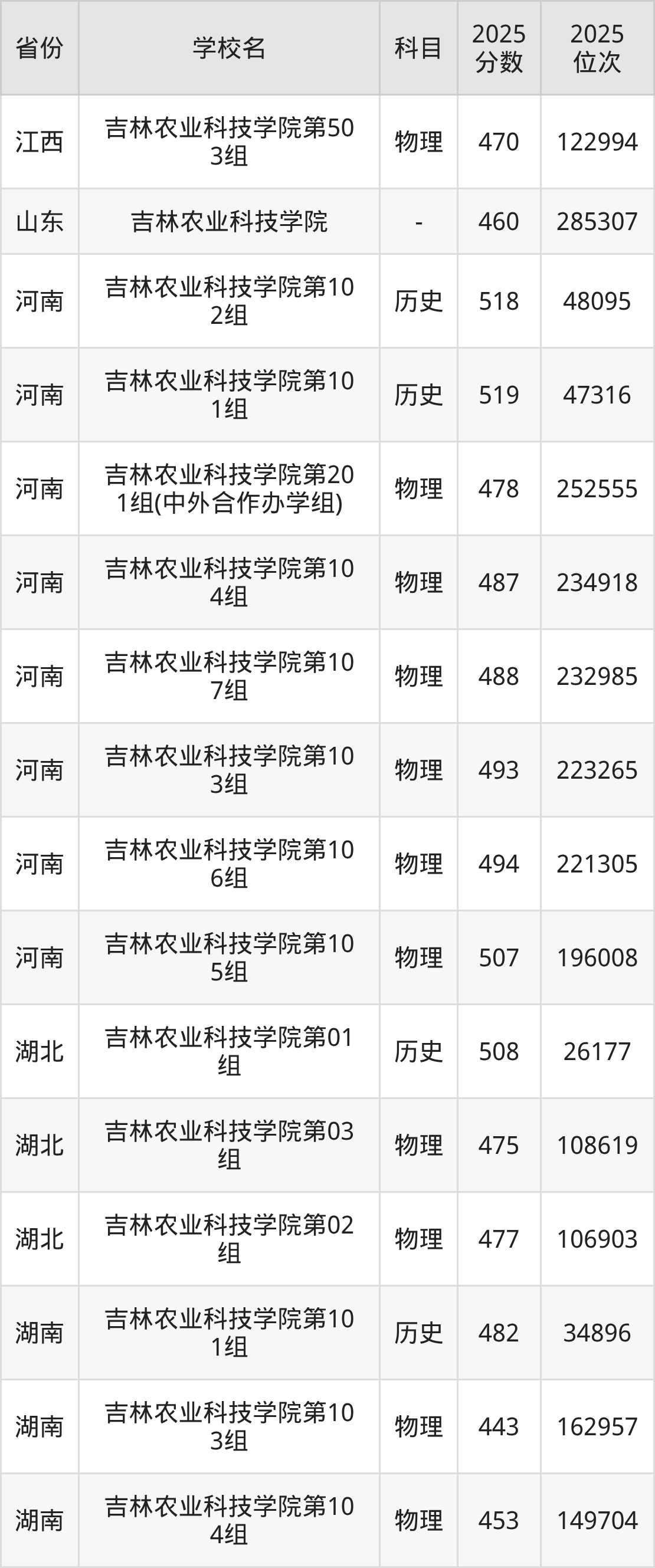 2025年吉林农业科技学院历史类最低分453分(13530名)、物理类最低分407分(53486名)。