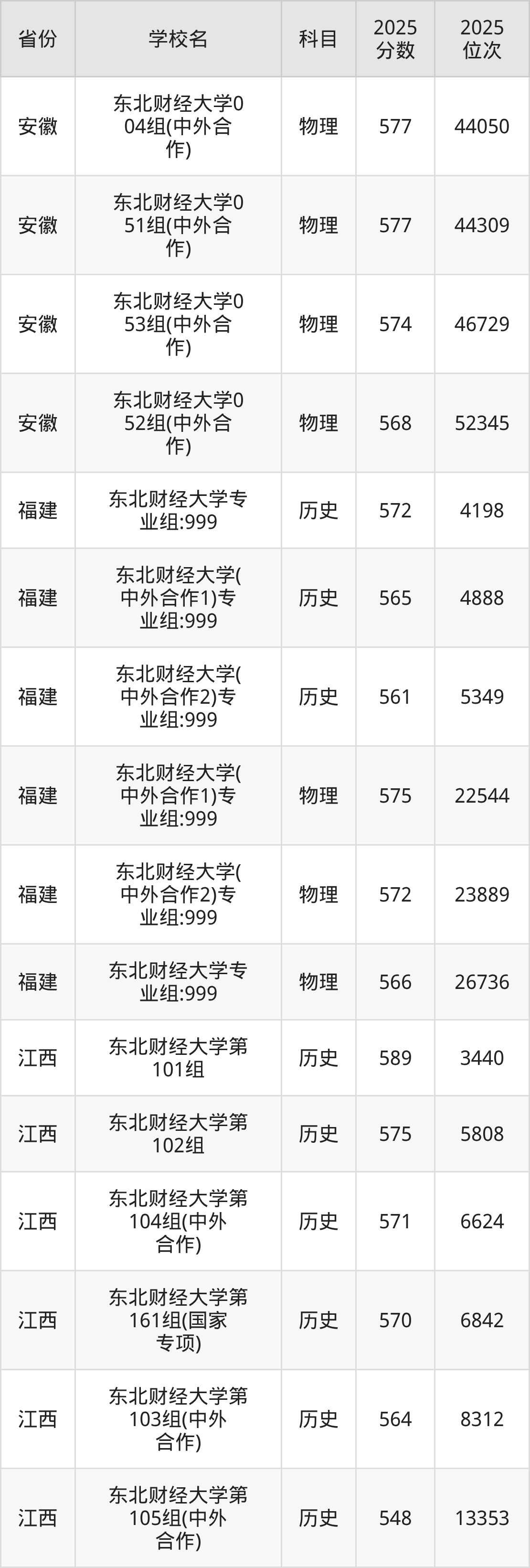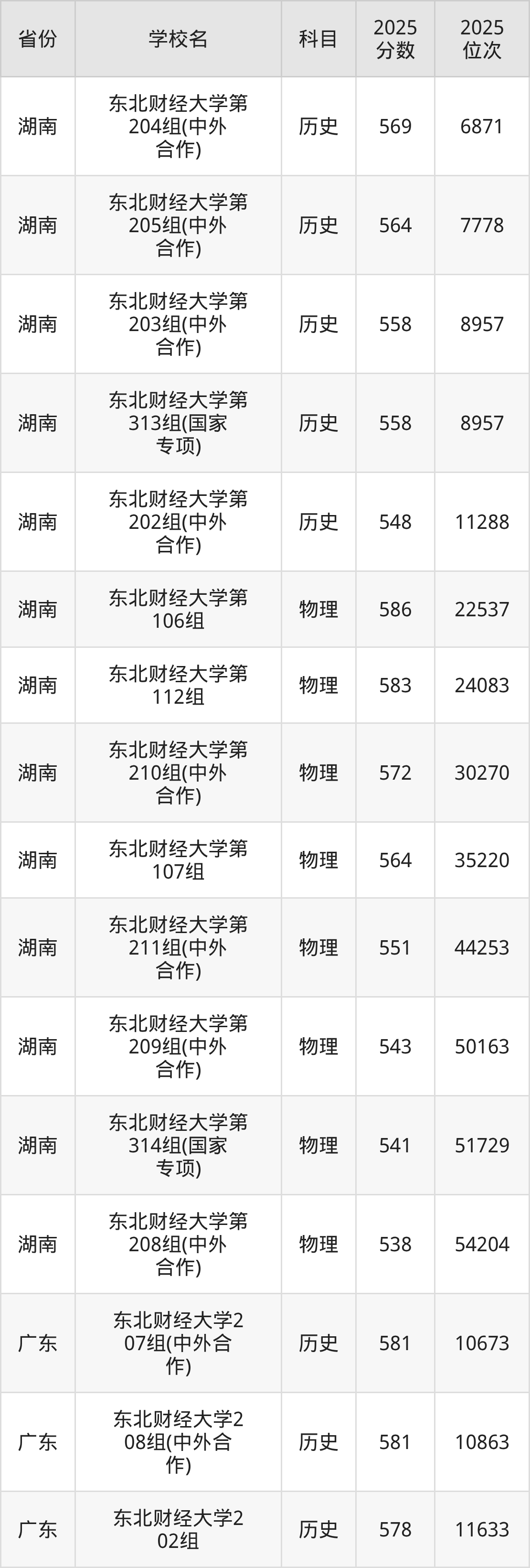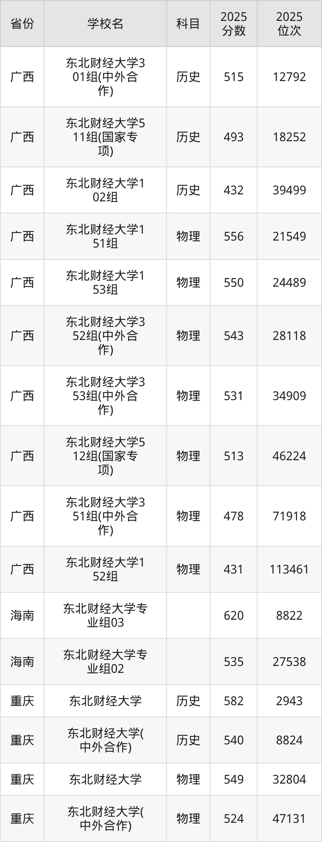 2025年东北财经大学历史类最低分555分(6368名)、物理类最低分554分(31013名)。