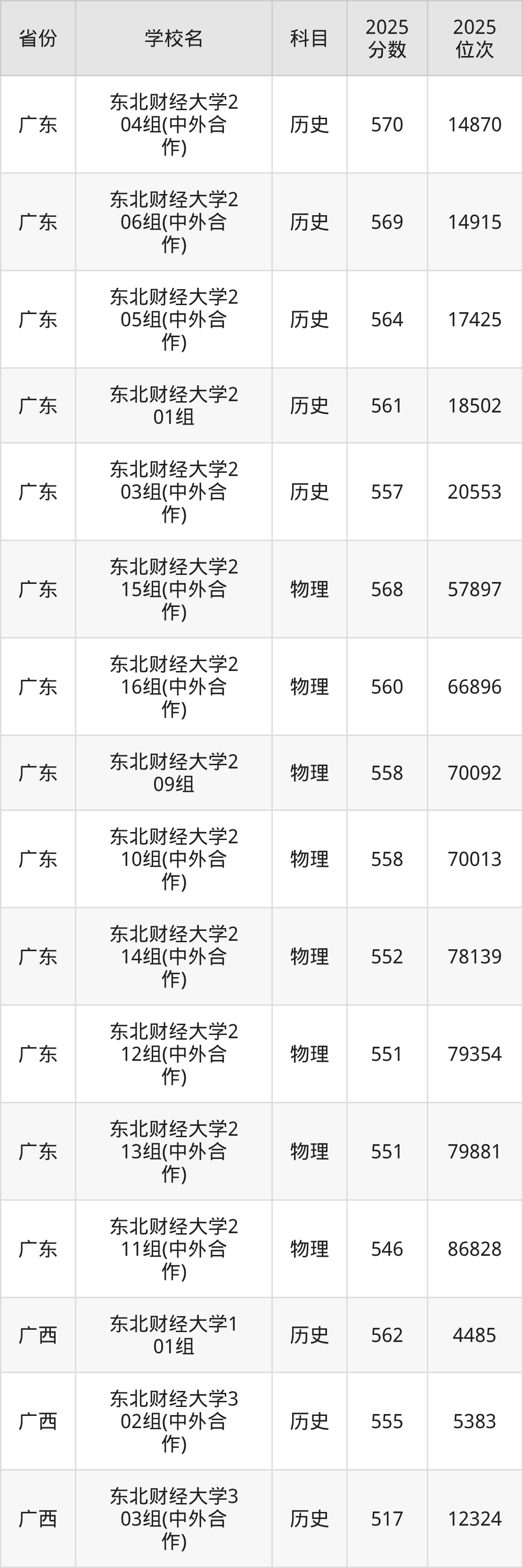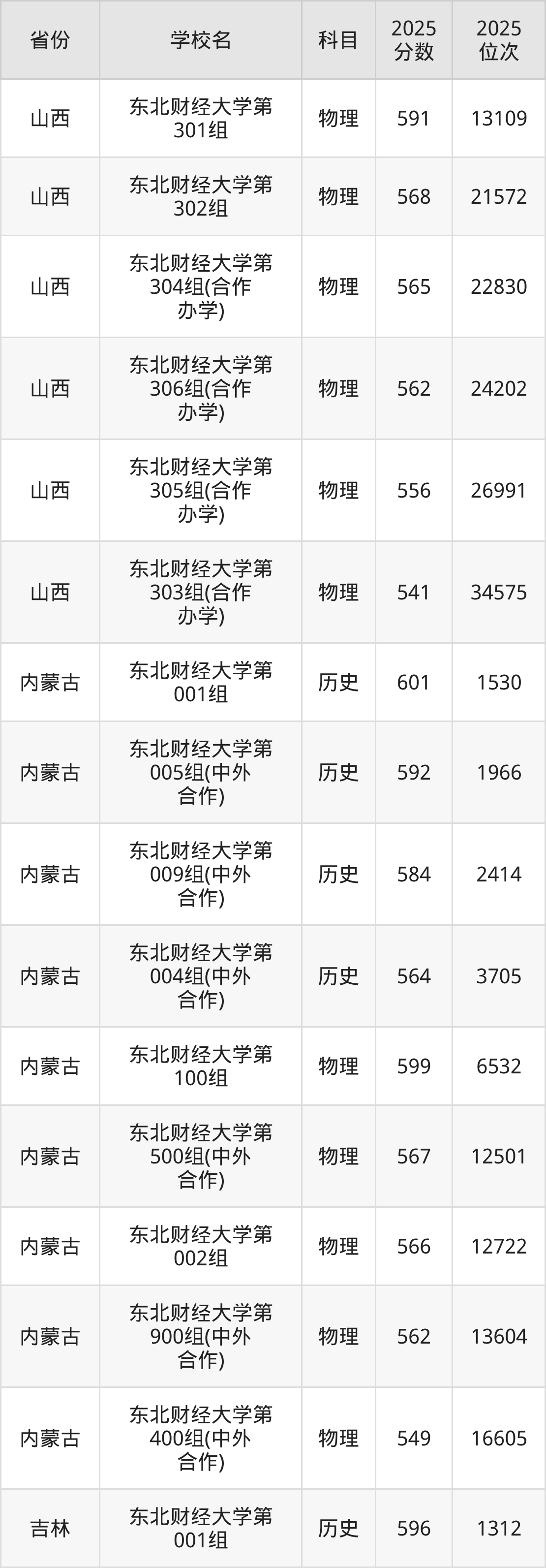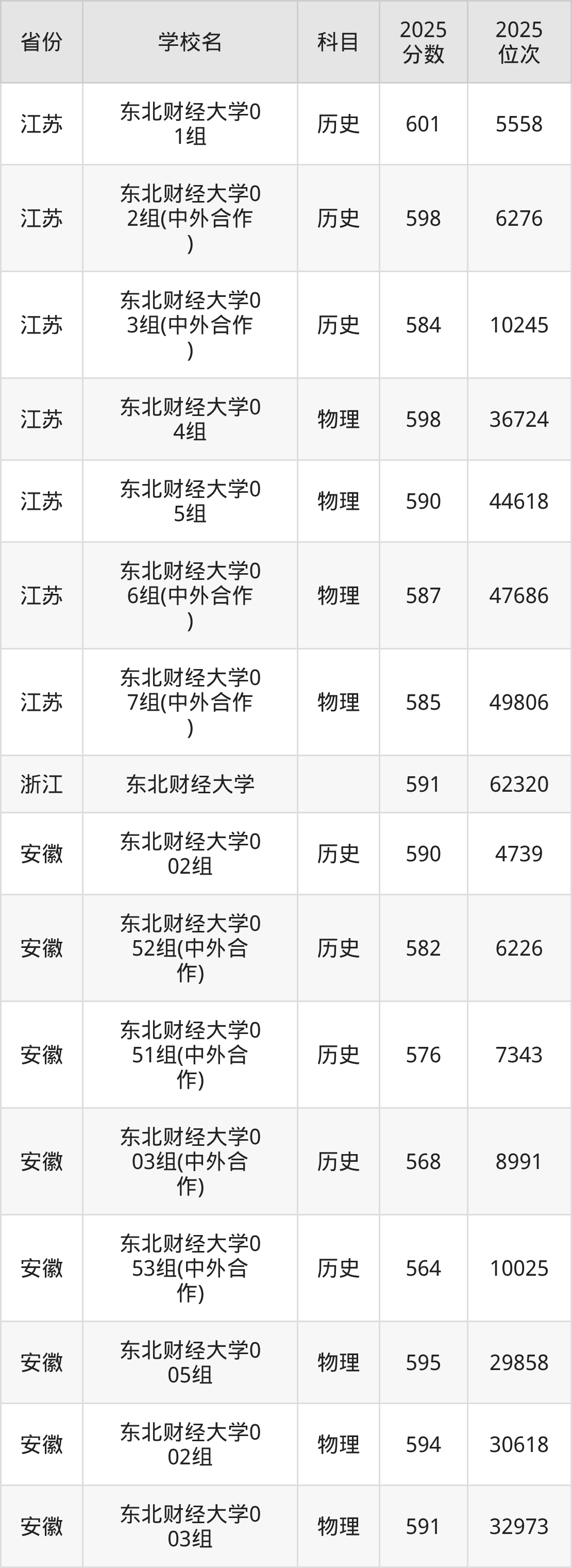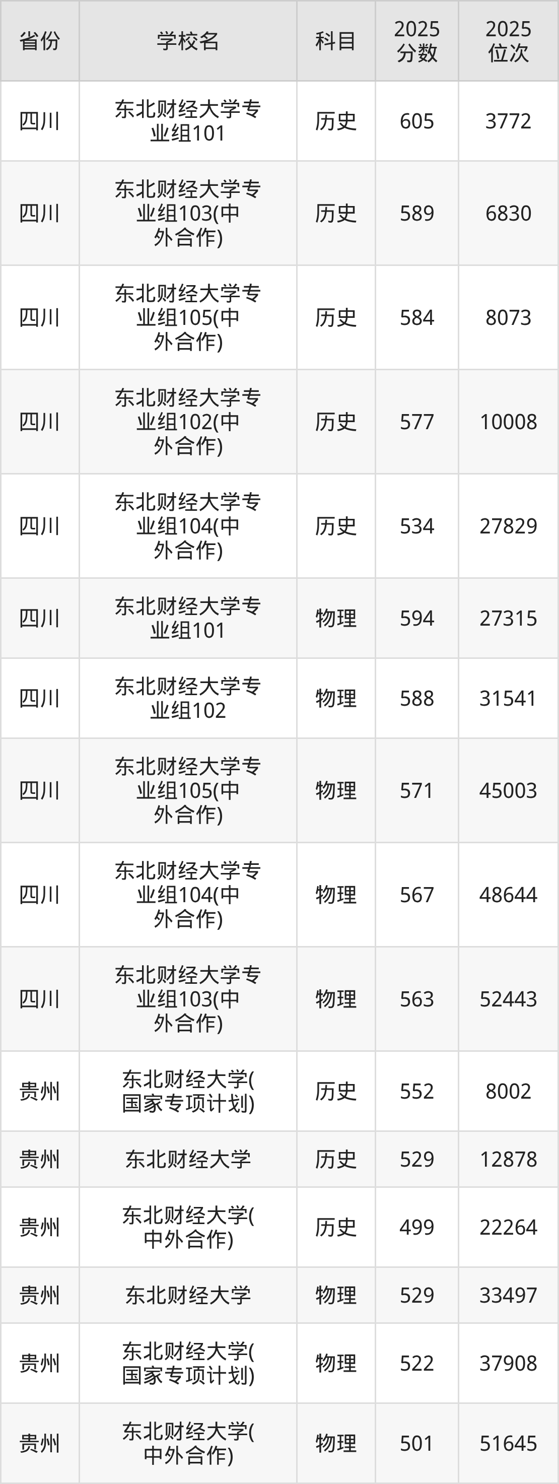 2025年东北财经大学历史类最低分555分(6368名)、物理类最低分554分(31013名)。