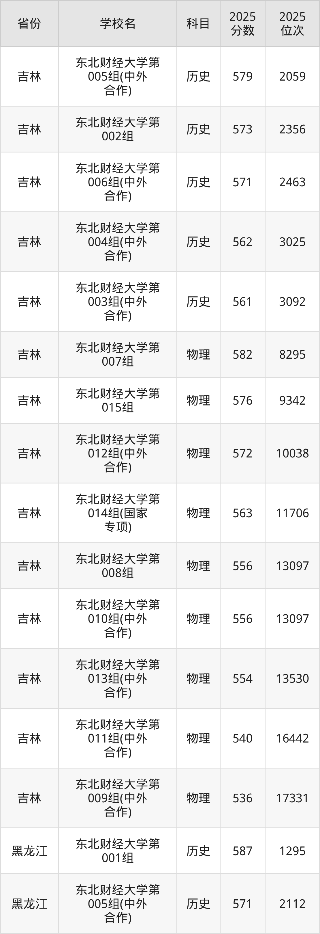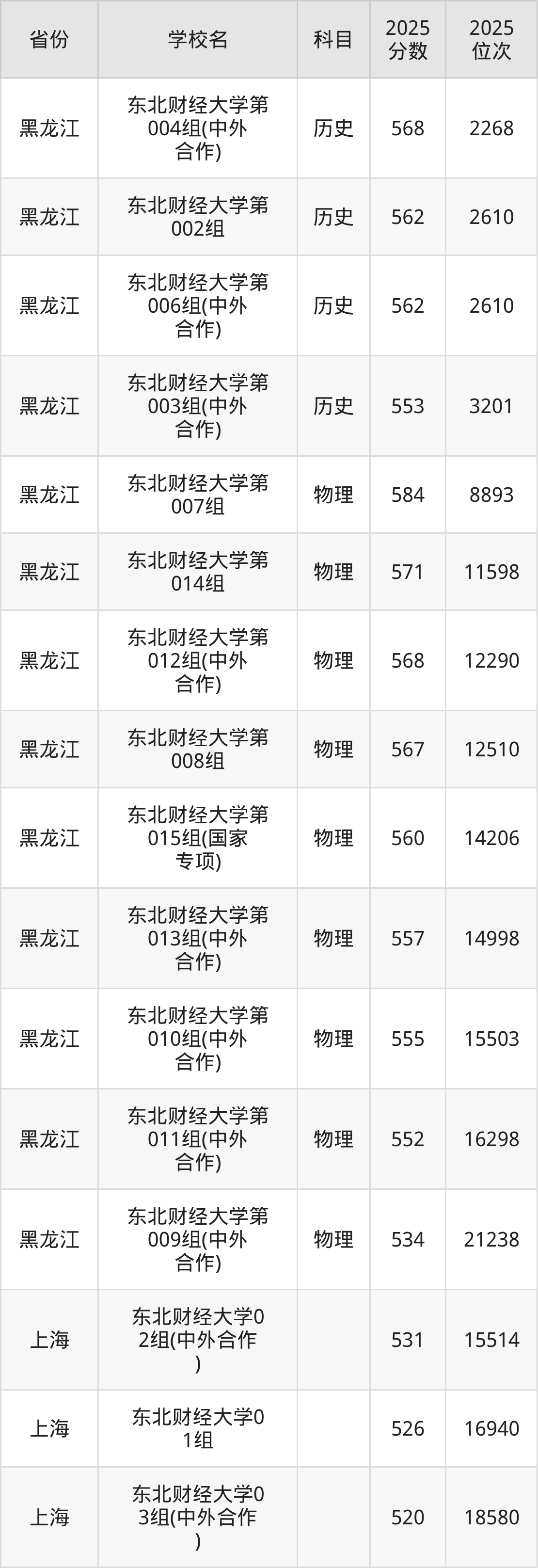 | 东北财经大学 | 历史 | 555 | 6368 |