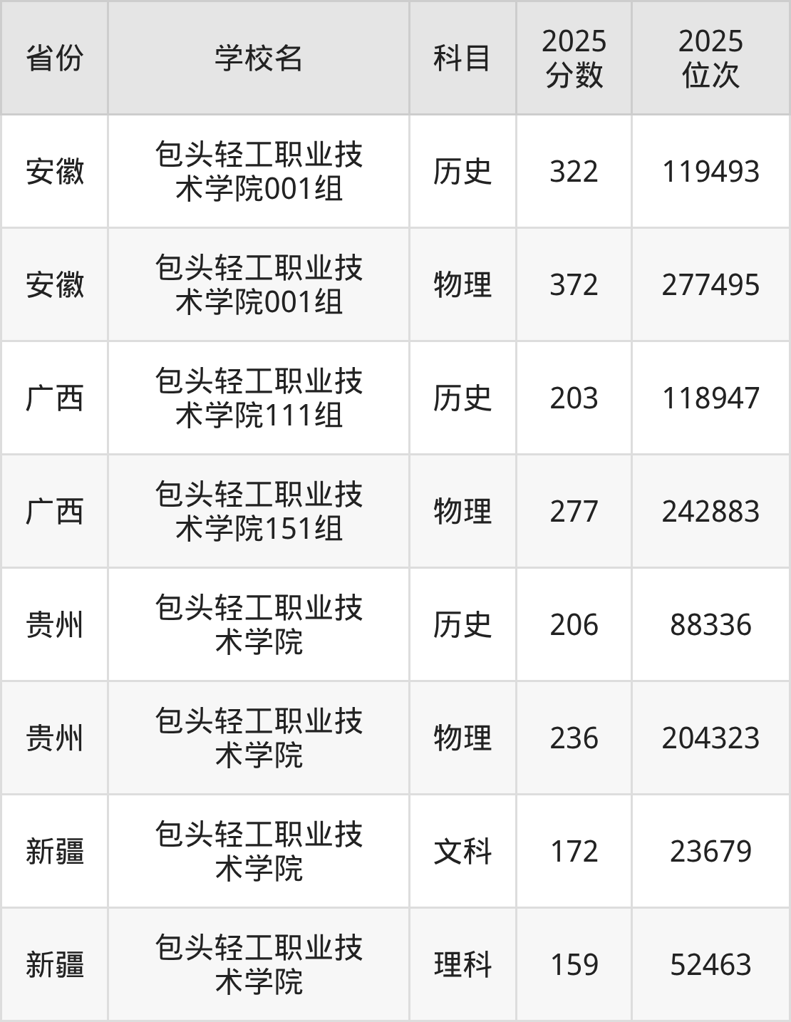 下面是包头轻工职业技术学院2025年录取分数线各省汇总,一起来了解下吧。