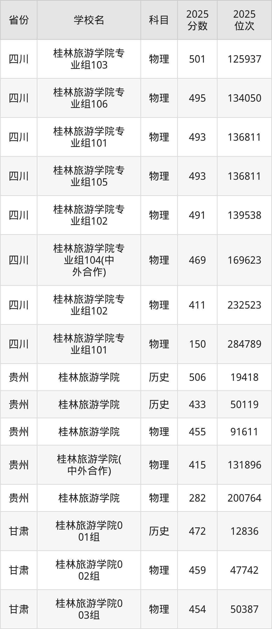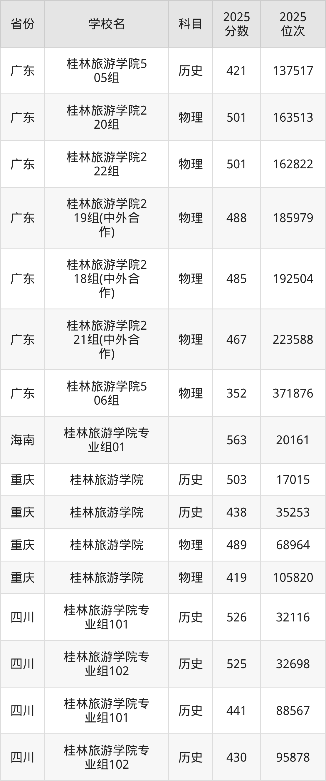 下面是桂林旅游学院2025年录取分数线各省汇总,一起来了解下吧。