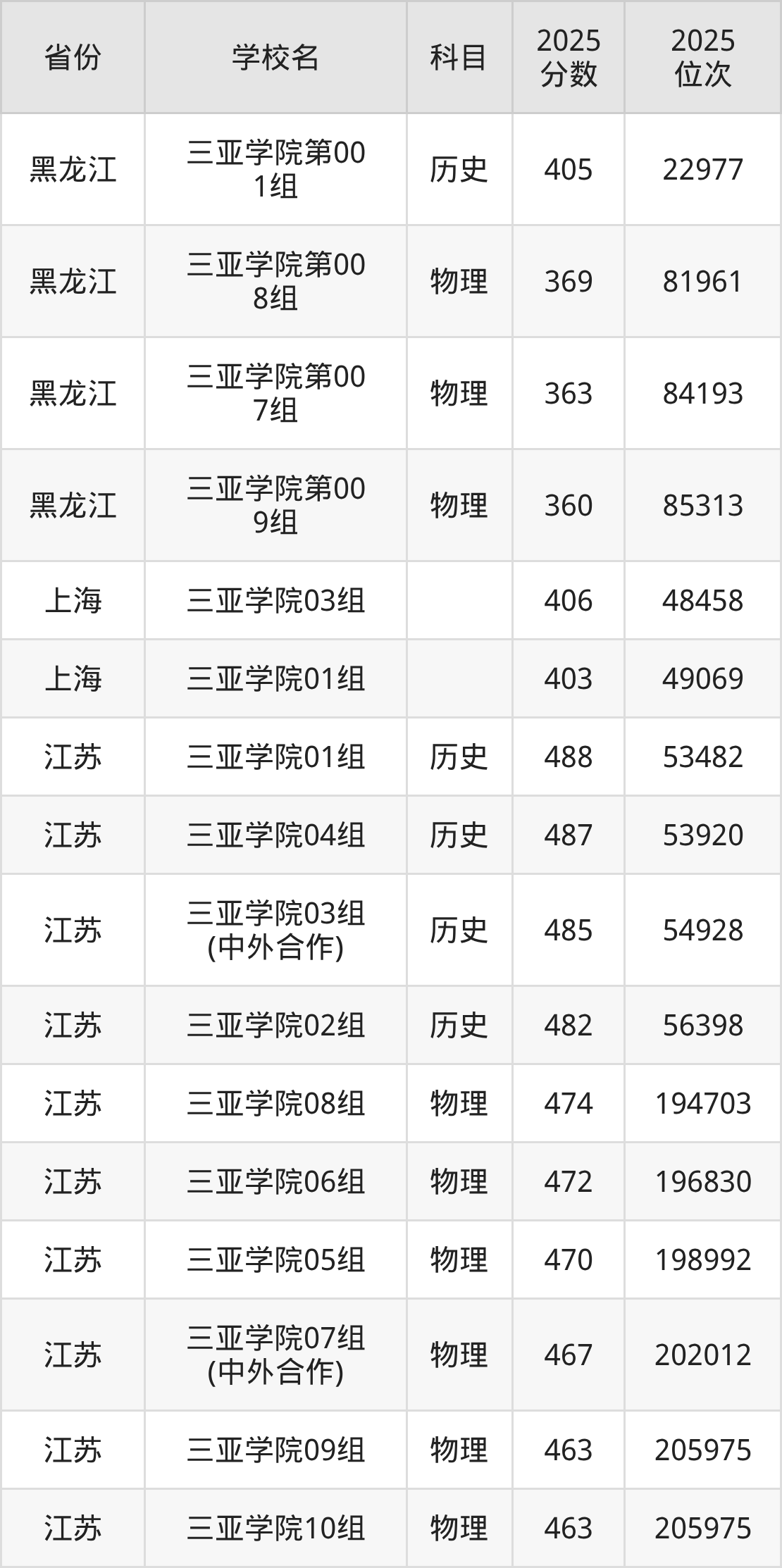 2026年三亚学院录取分数线预计在430分及以上,在各省录取最低分存在一定差异,如:2025年三亚学院在新疆录取最低文科336分、理科280分,在北京录取最低分是459分,在吉林录取最低历史类397分、物理类321分。
