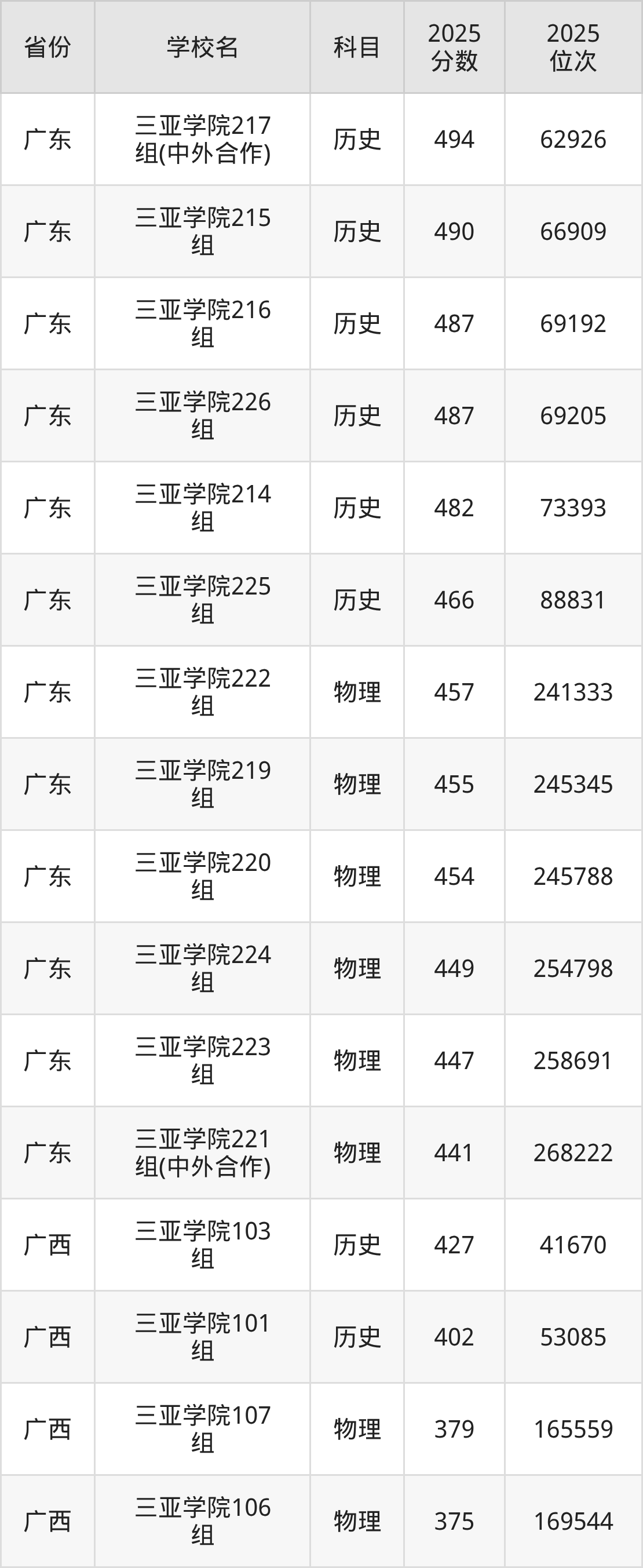 | 三亚学院专业组 07 | 491 | 40093 |