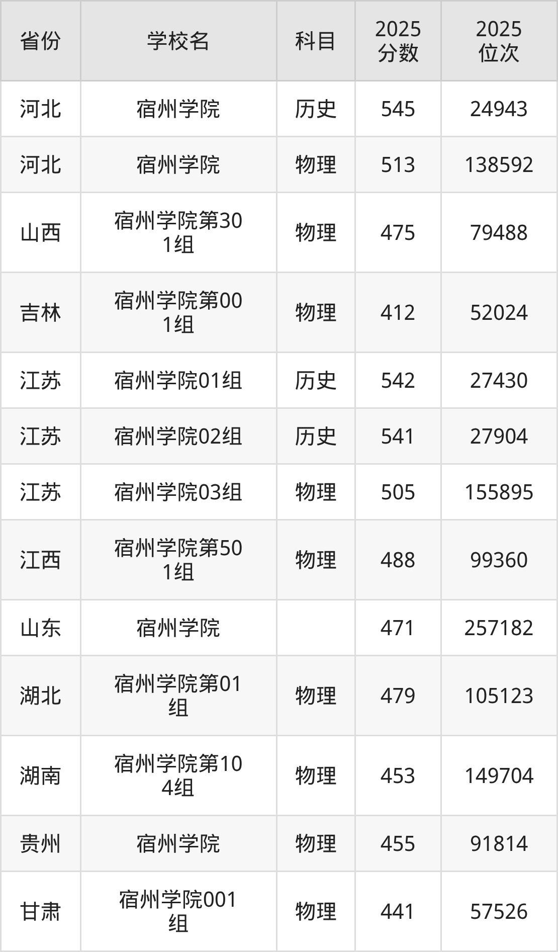 下面是宿州学院2025年录取分数线各省汇总,一起来了解下吧。