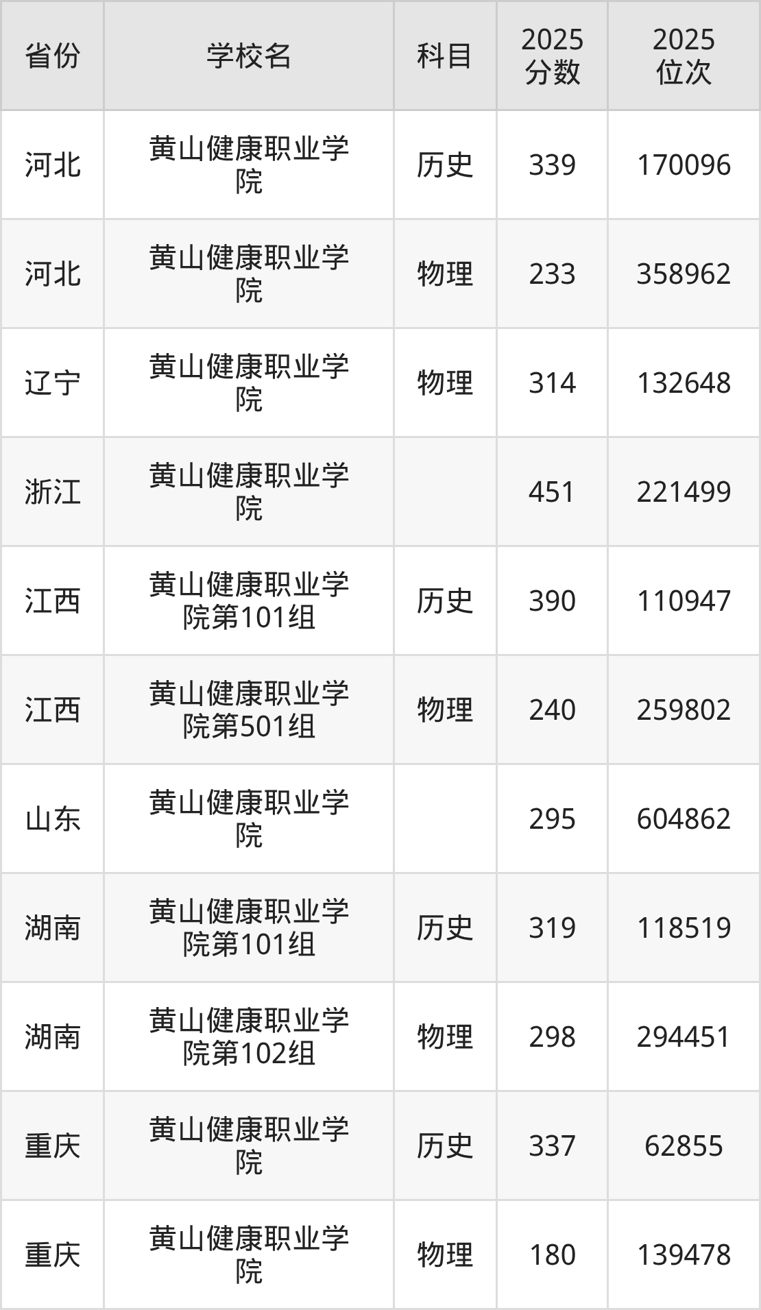 下面是黄山健康职业学院2025年录取分数线各省汇总,一起来了解下吧。
