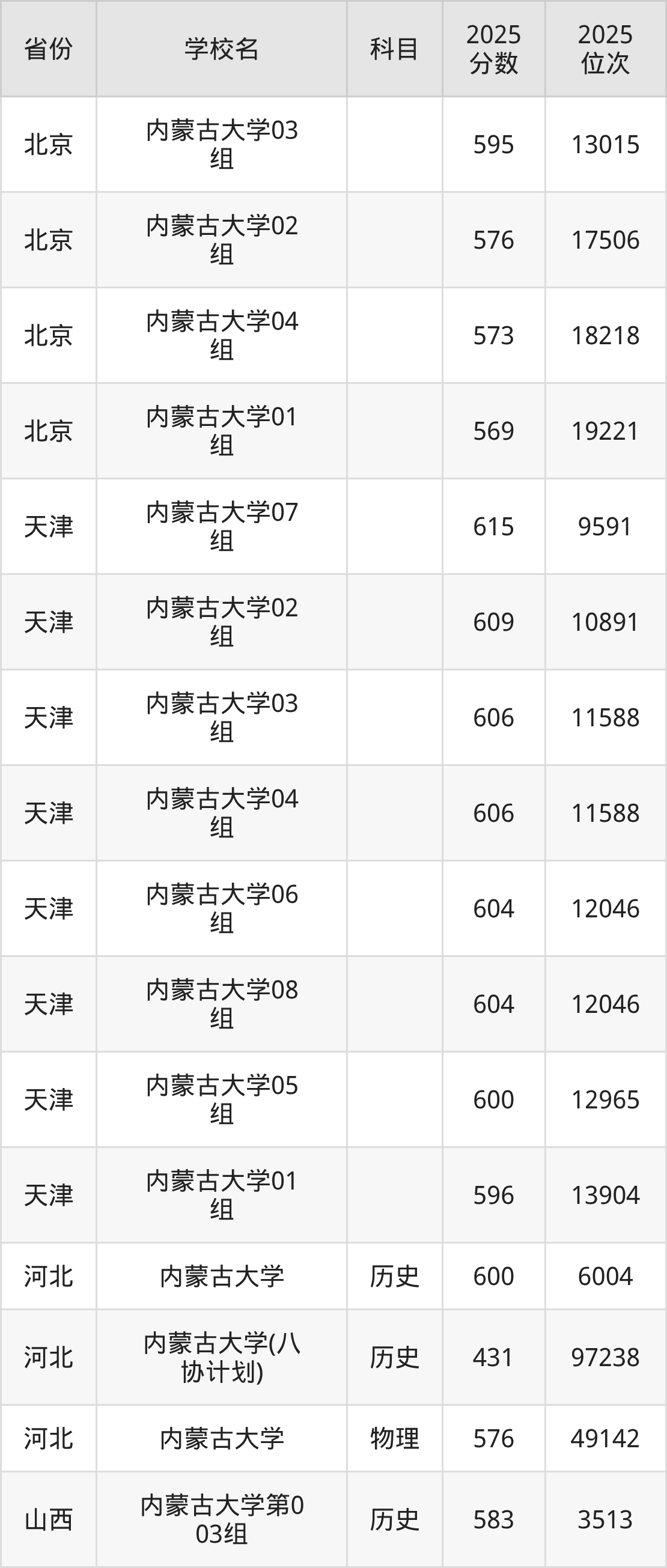 下面是内蒙古大学2025年录取分数线各省汇总,一起来了解下吧。