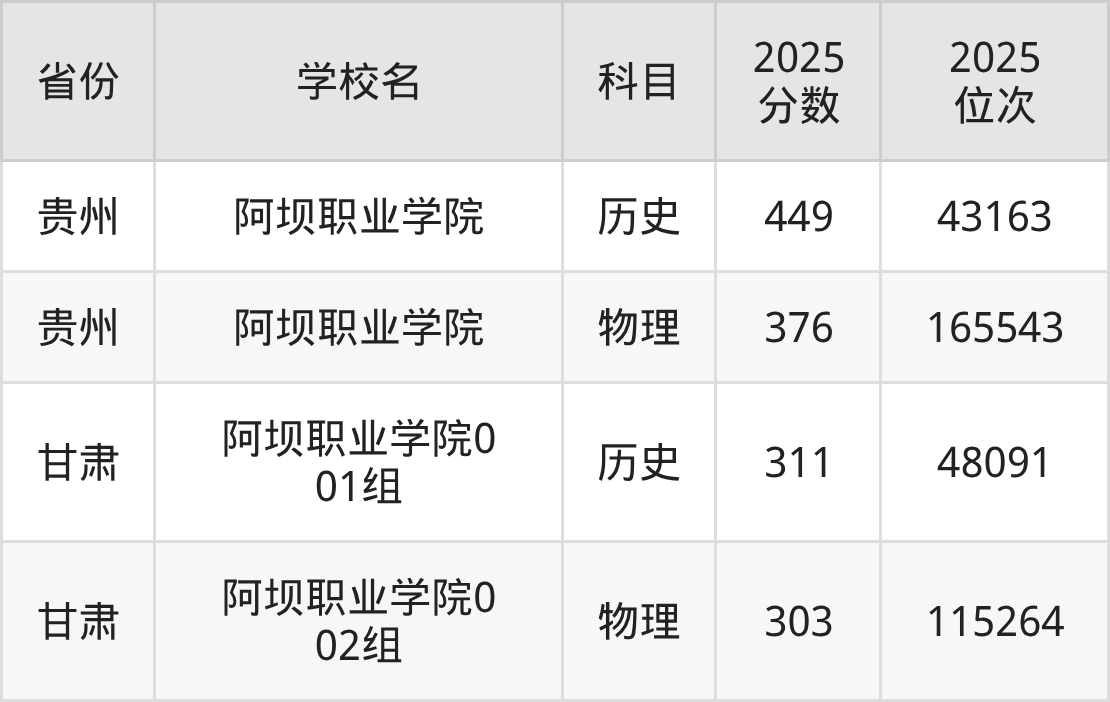 下面是阿坝职业学院2025年录取分数线各省汇总,一起来了解下吧。
