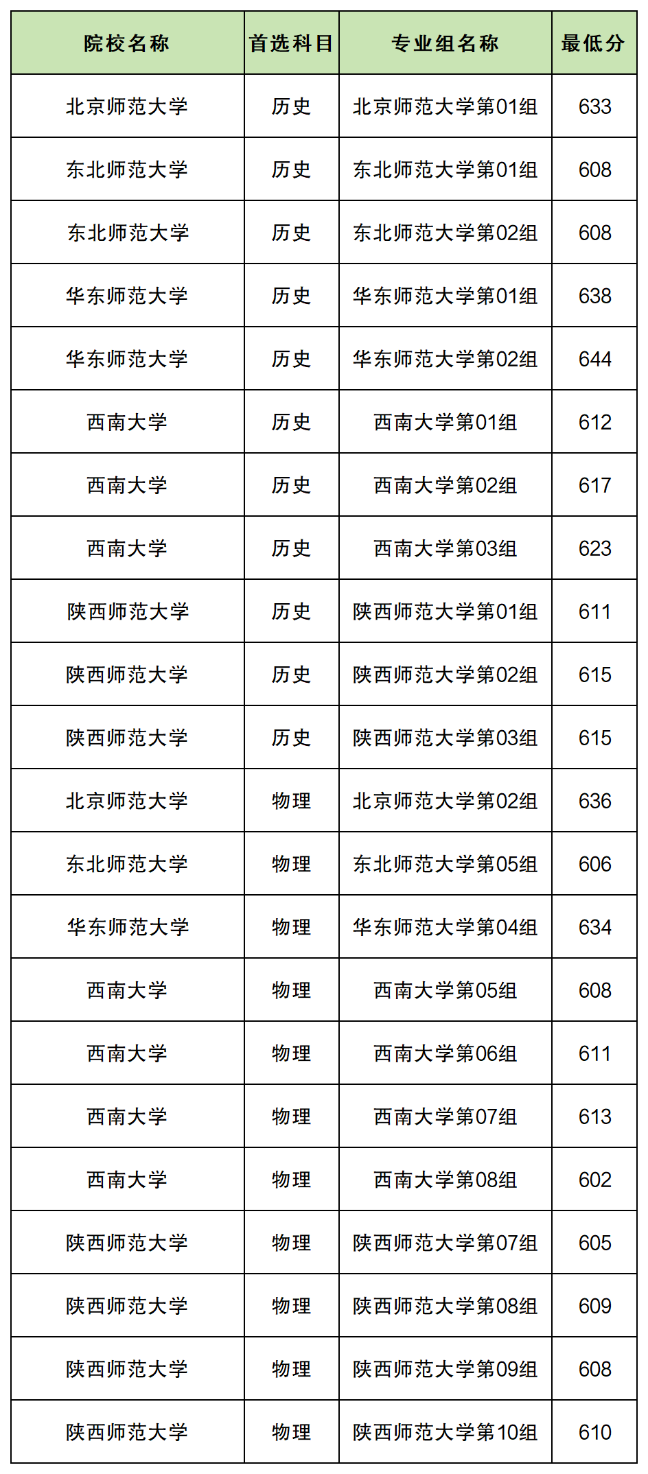 国家公费师范生院校:北京师范大学、西南大学、华东师范大学、陕西师范大学、东北师范大学;