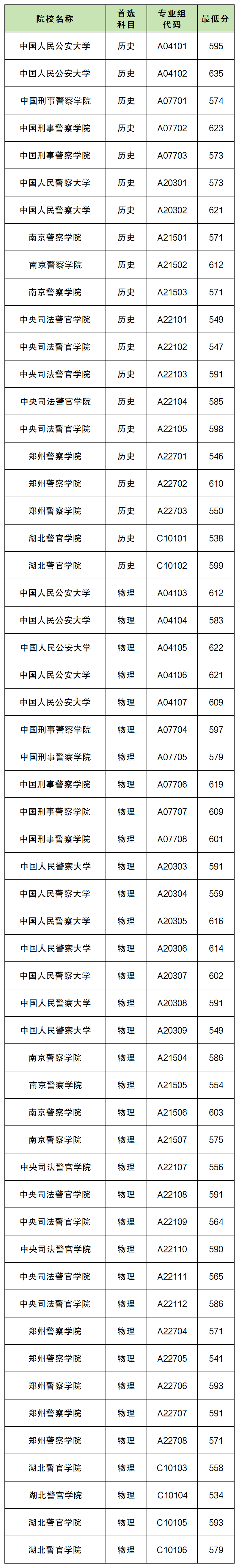 物理类最低534分,对应湖北警官学院第04组;历史类最低538分,对应湖北警官学院第01组。
