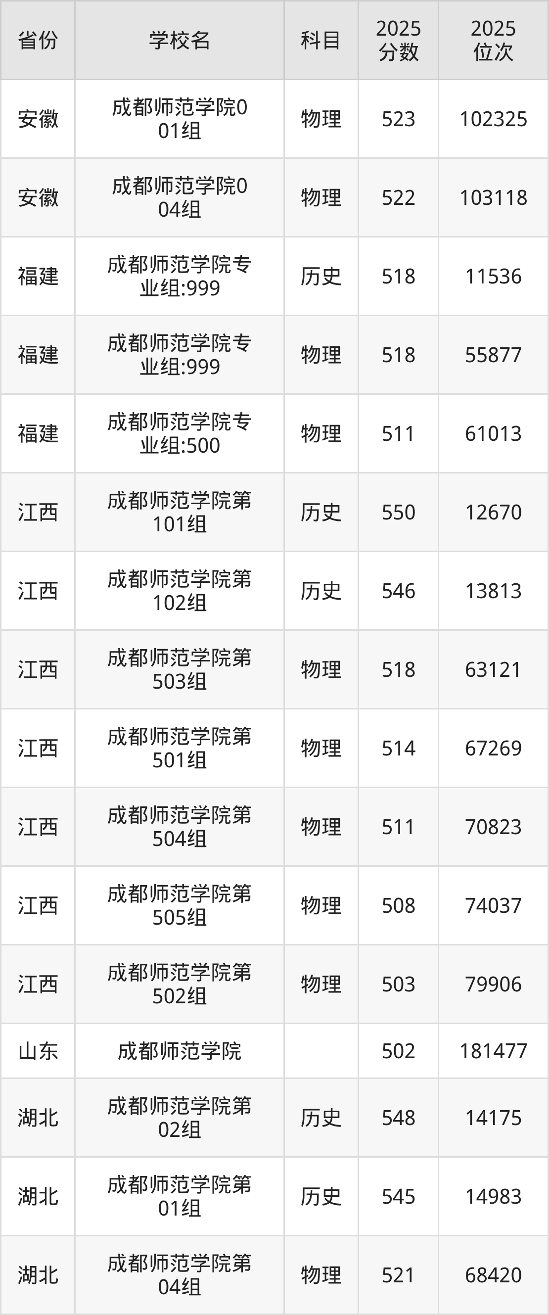 | 成都师范学院专 业组102 | 历史 | 545 | 22376 |