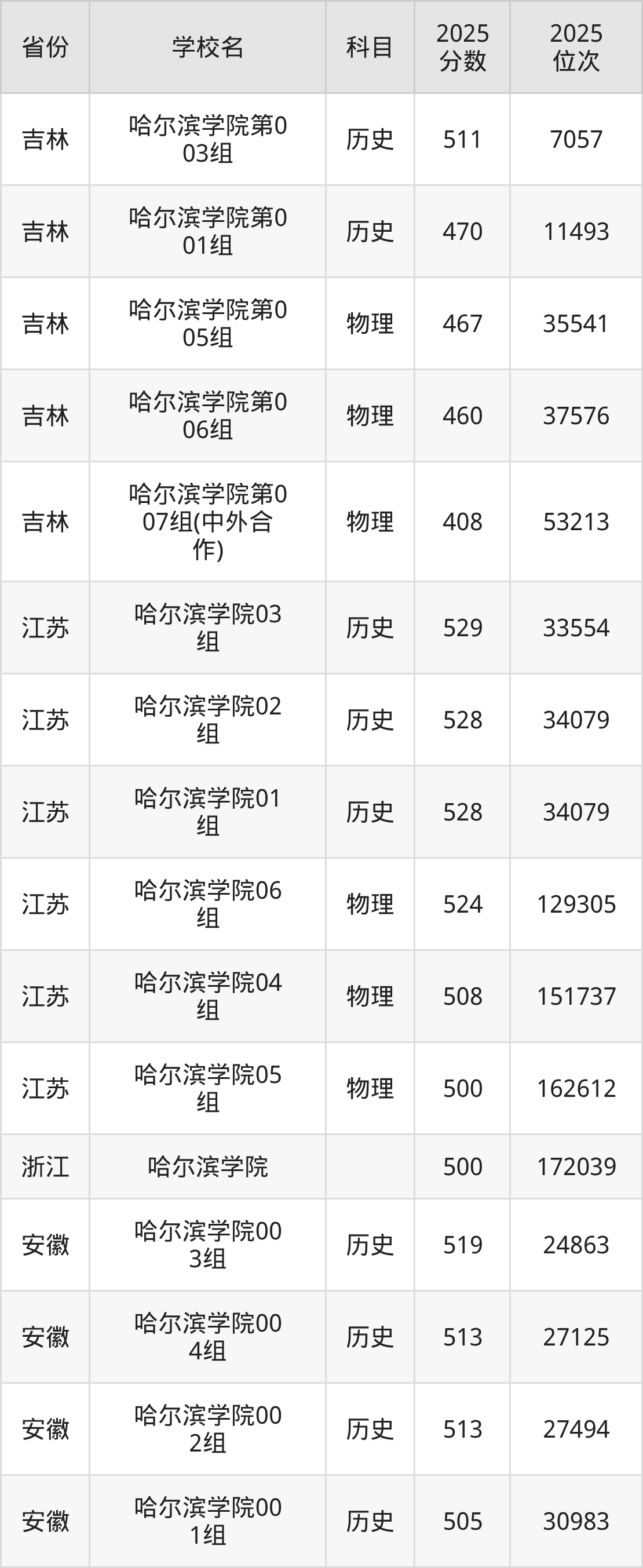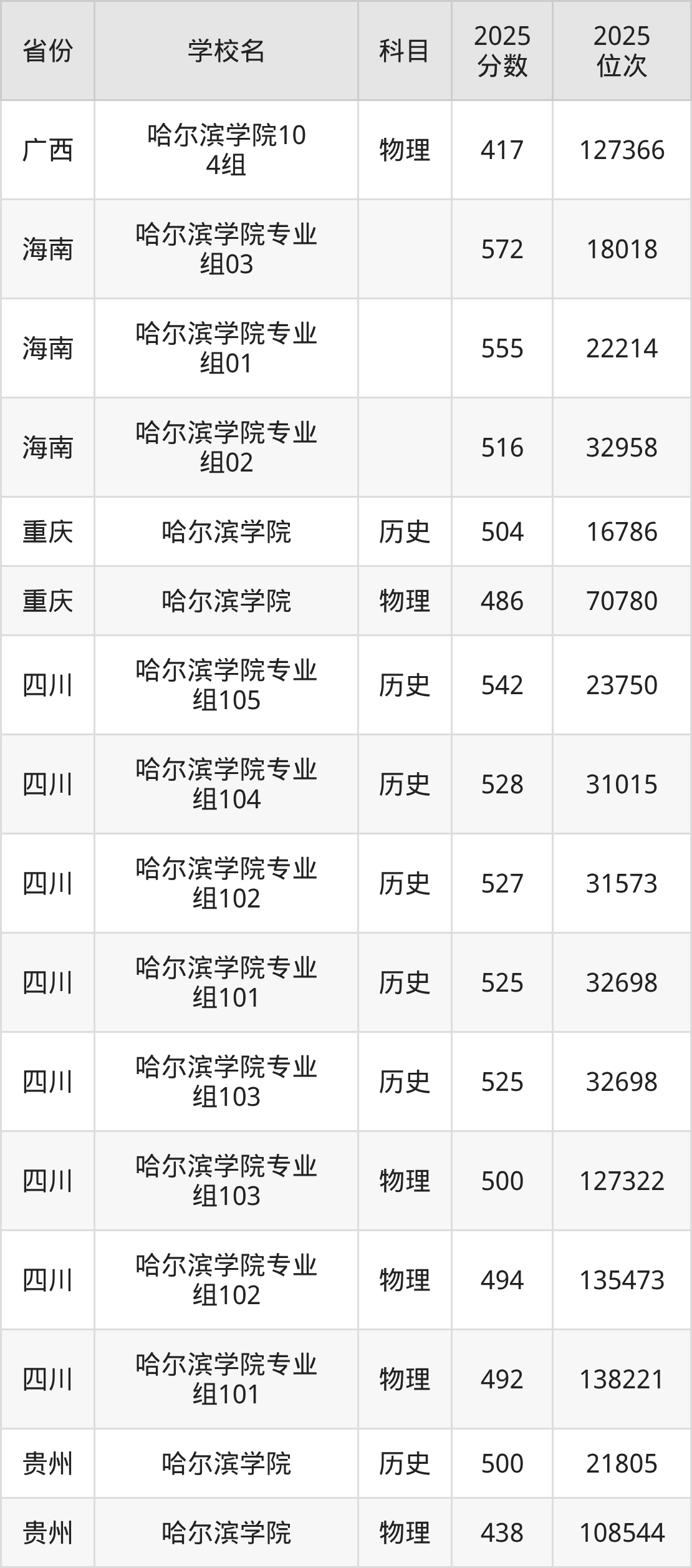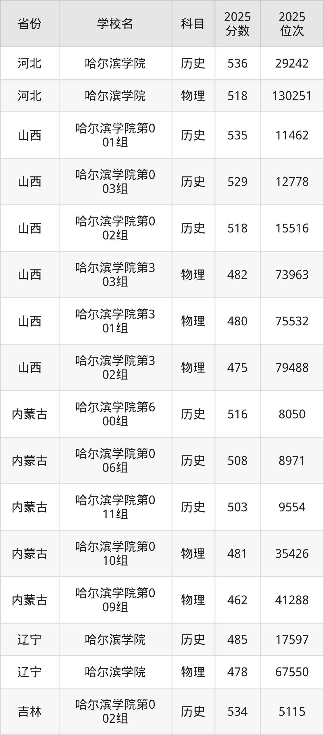 2025年哈尔滨学院历史类最低分419分(20367名)、物理类最低分390分(73796名)。