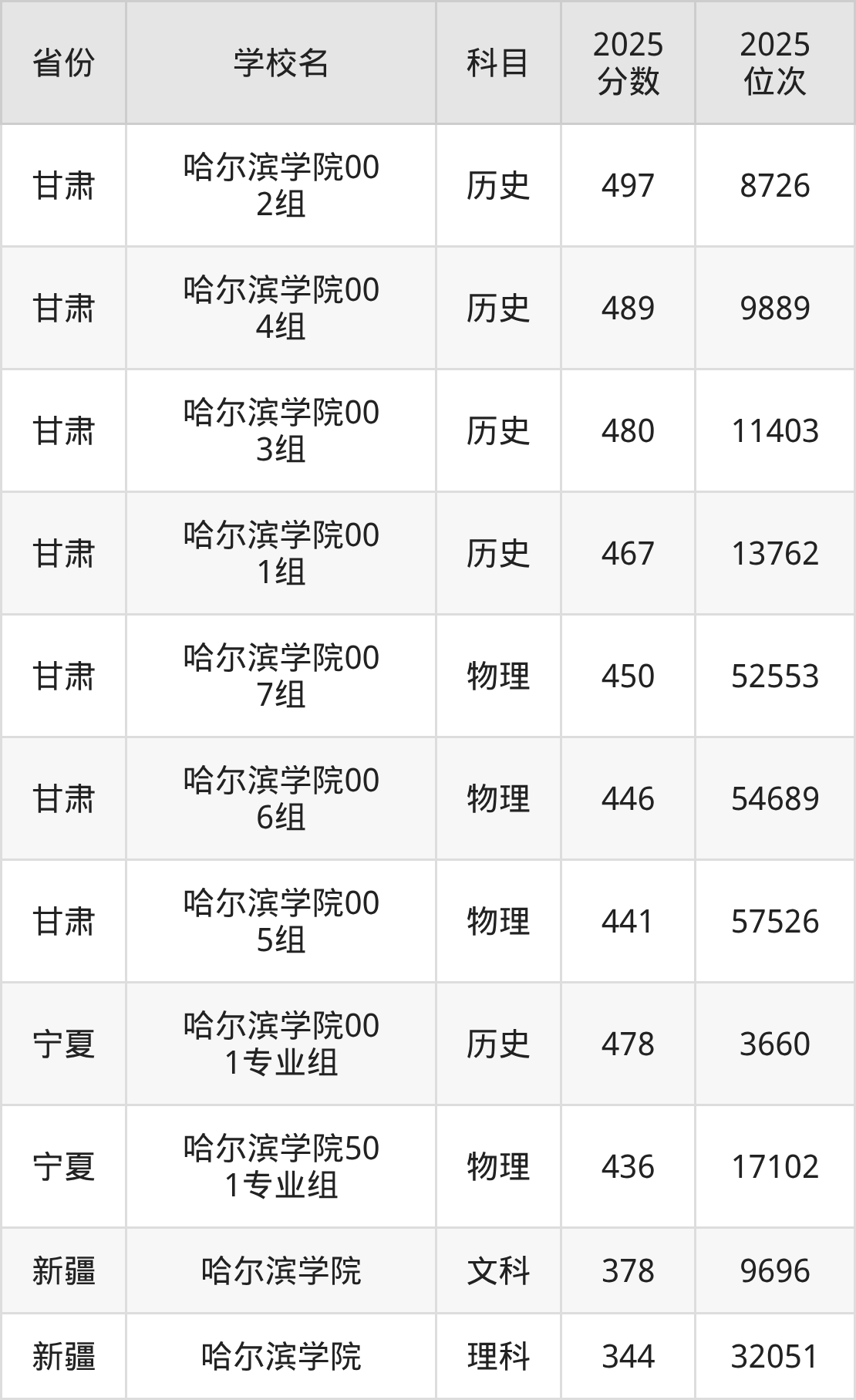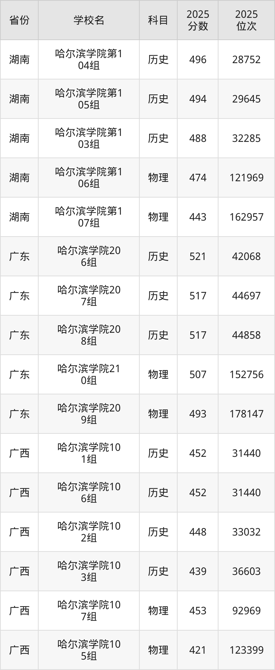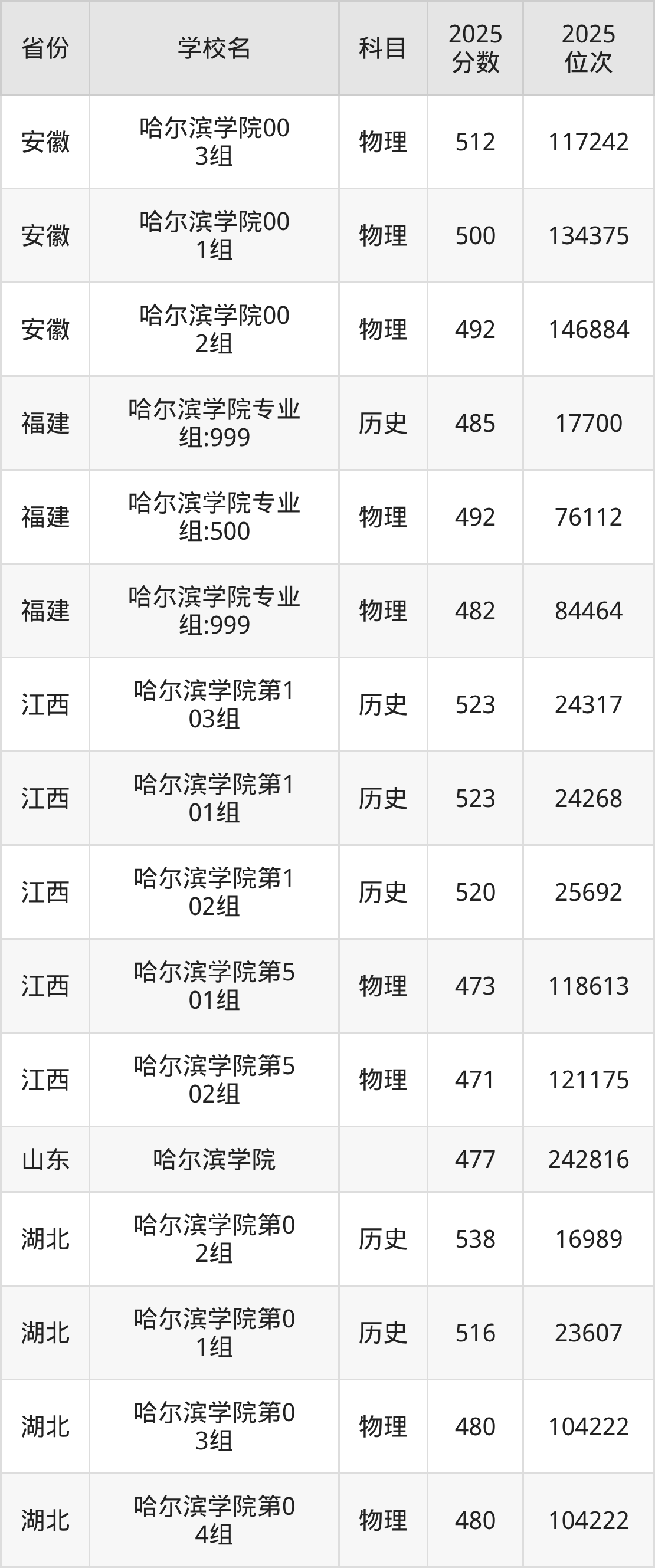 2025年哈尔滨学院历史类最低分419分(20367名)、物理类最低分390分(73796名)。