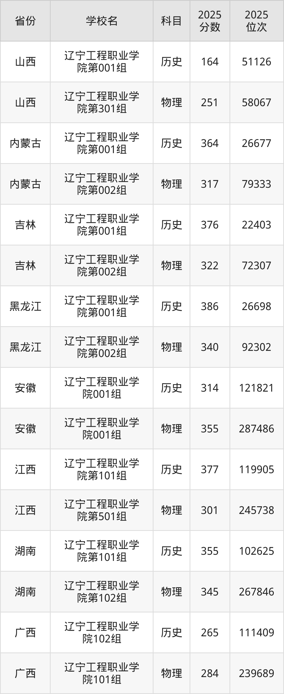 下面是辽宁工程职业学院2025年录取分数线各省汇总,一起来了解下吧。