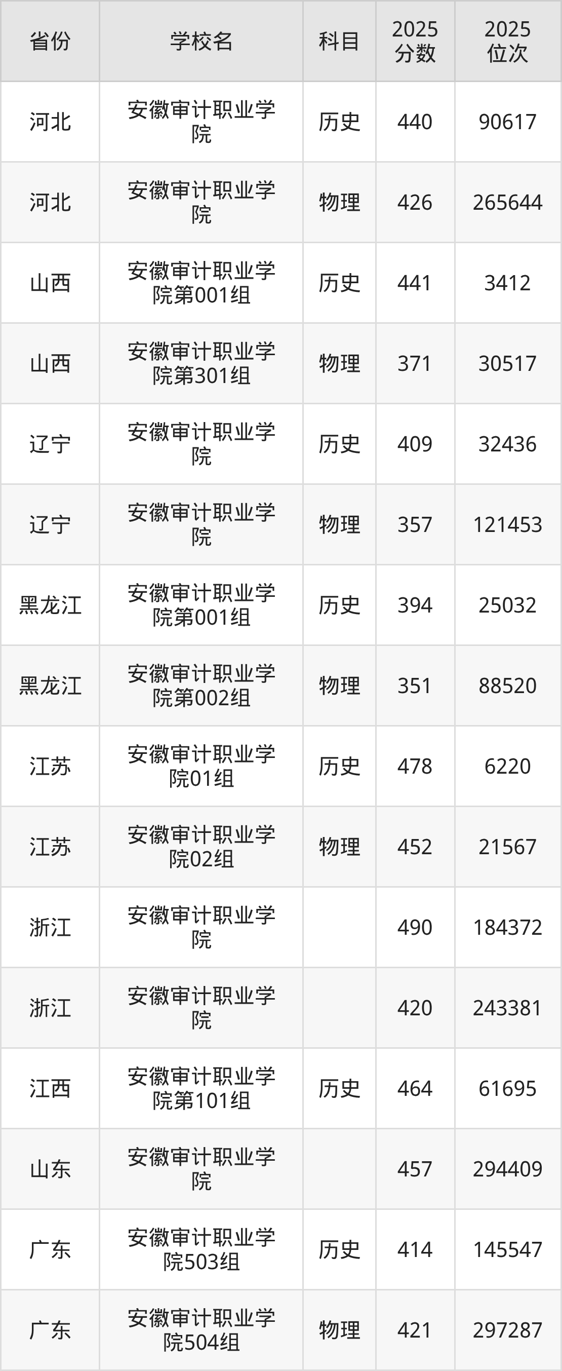 下面是安徽审计职业学院2025年录取分数线各省汇总,一起来了解下吧。