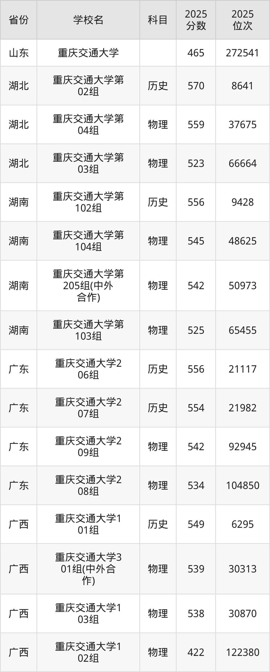 下面是重庆交通大学2025年录取分数线各省汇总,一起来了解下吧。