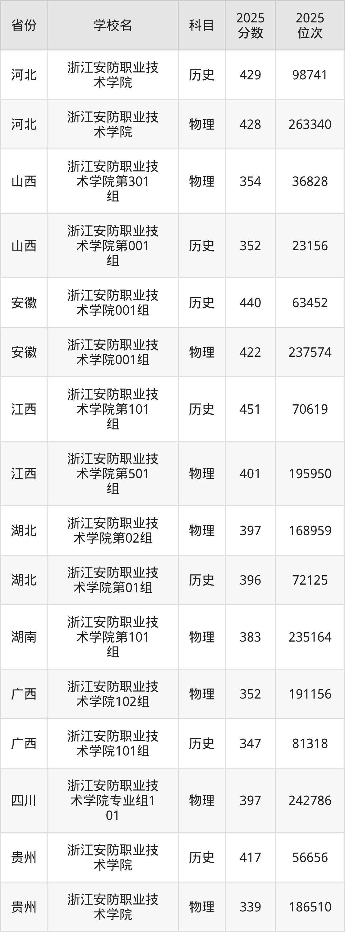 下面是浙江安防职业技术学院2025年录取分数线各省汇总,一起来了解下吧。