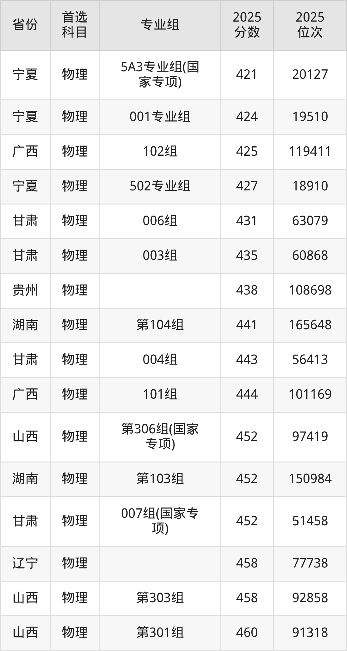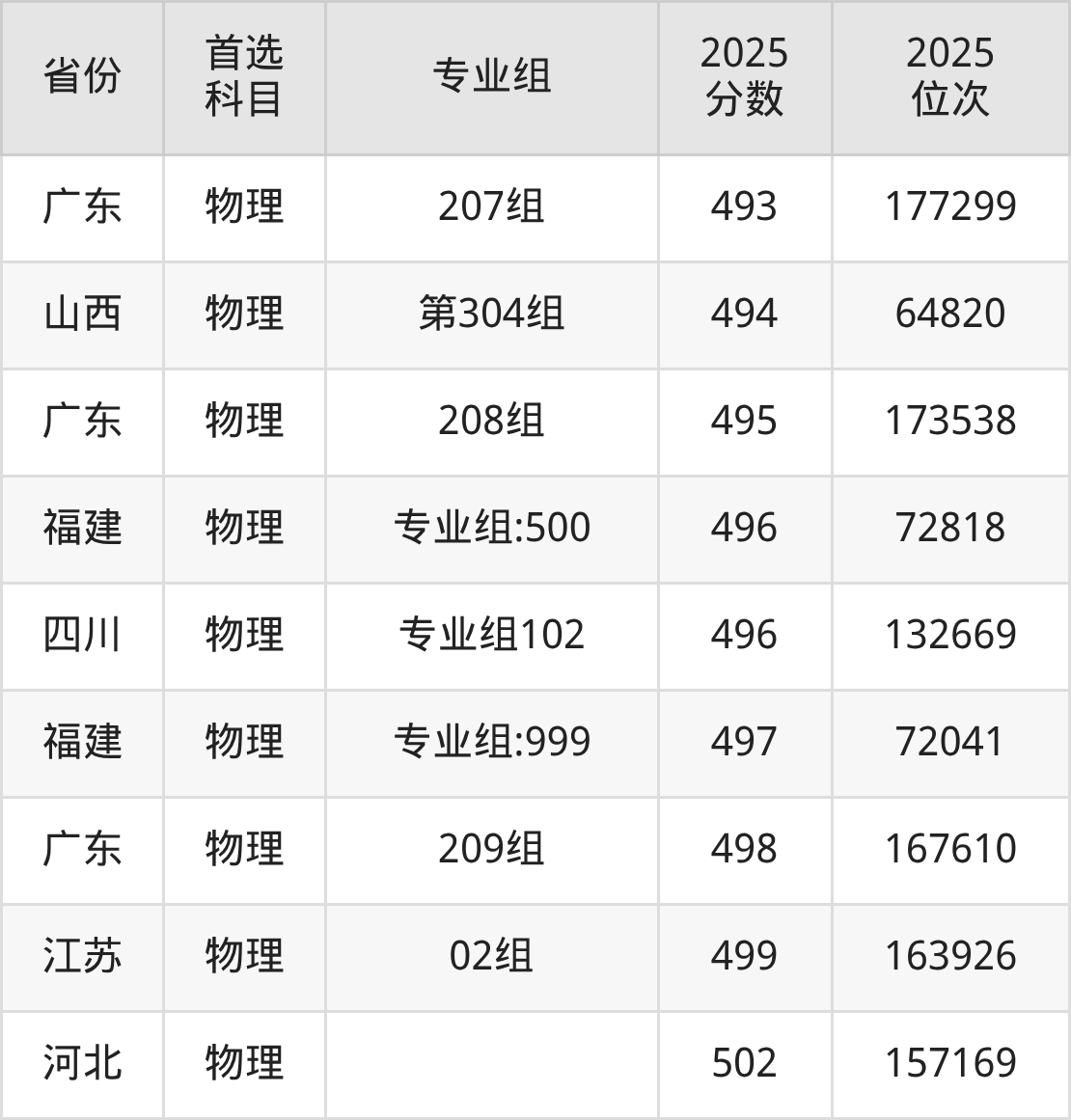 物理类最低分对应地区为黑龙江(第003组),录取位次为69792;最高分对应地区为河北,录取位次为157169,超本科线43分。