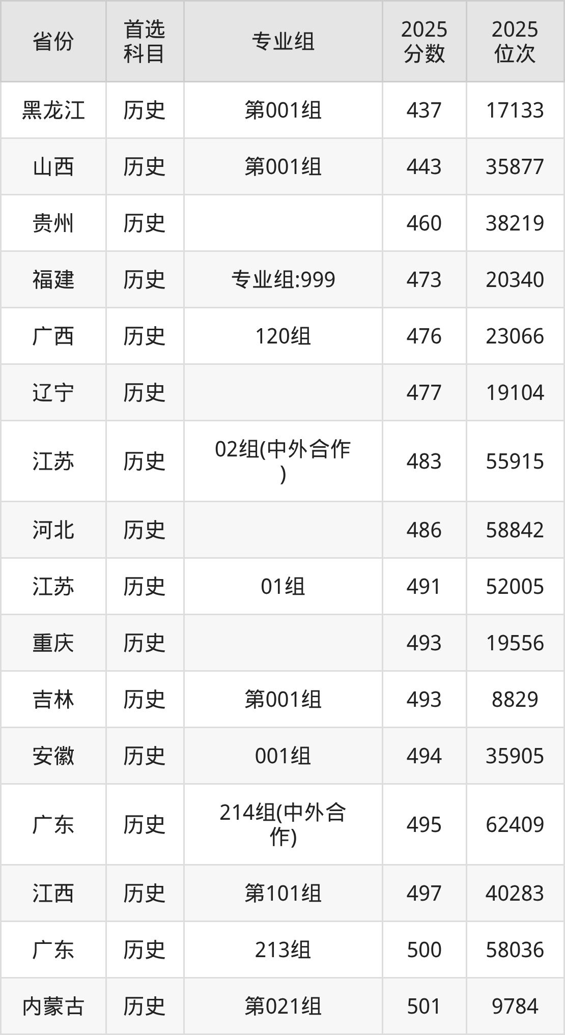 历史类:01组478分、50548名,02组(中外合作)481分、49205名;