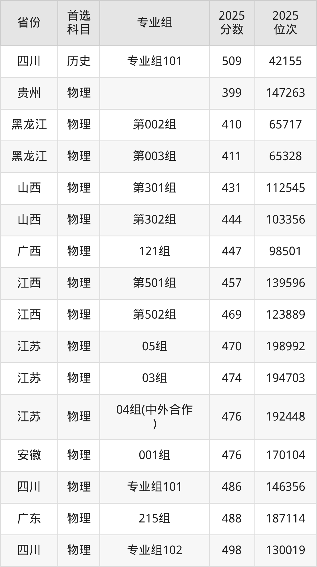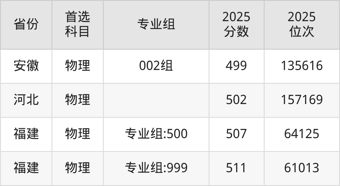 物理类:03组491分、155089名,04组(中外合作)465分、184007名,05组470分、178870名;
