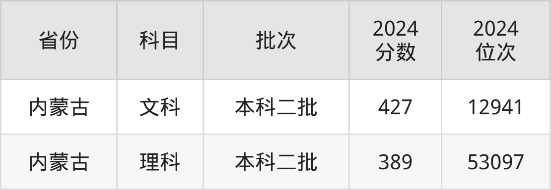 2024年内蒙古农业大学(其他单列)在旧高考地区的录取分数线为:文科427分、理科389分。