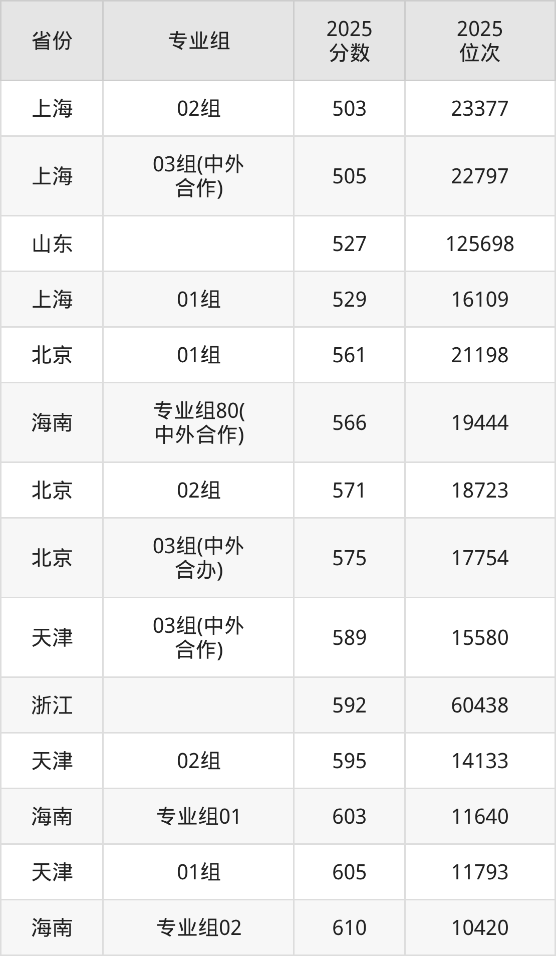 最低分对应地区为上海(02组),录取位次为23377,超本科线101分;最高分对应地区为海南(专业组02),录取位次为10420。