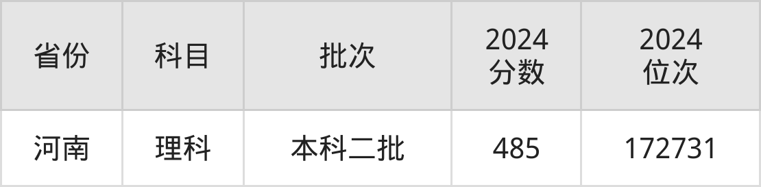 理科最低分对应地区为河南,录取位次为172731,超二本线89分。