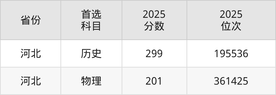 物理类最低分对应地区为河北,录取位次为361425,超专科线1分。